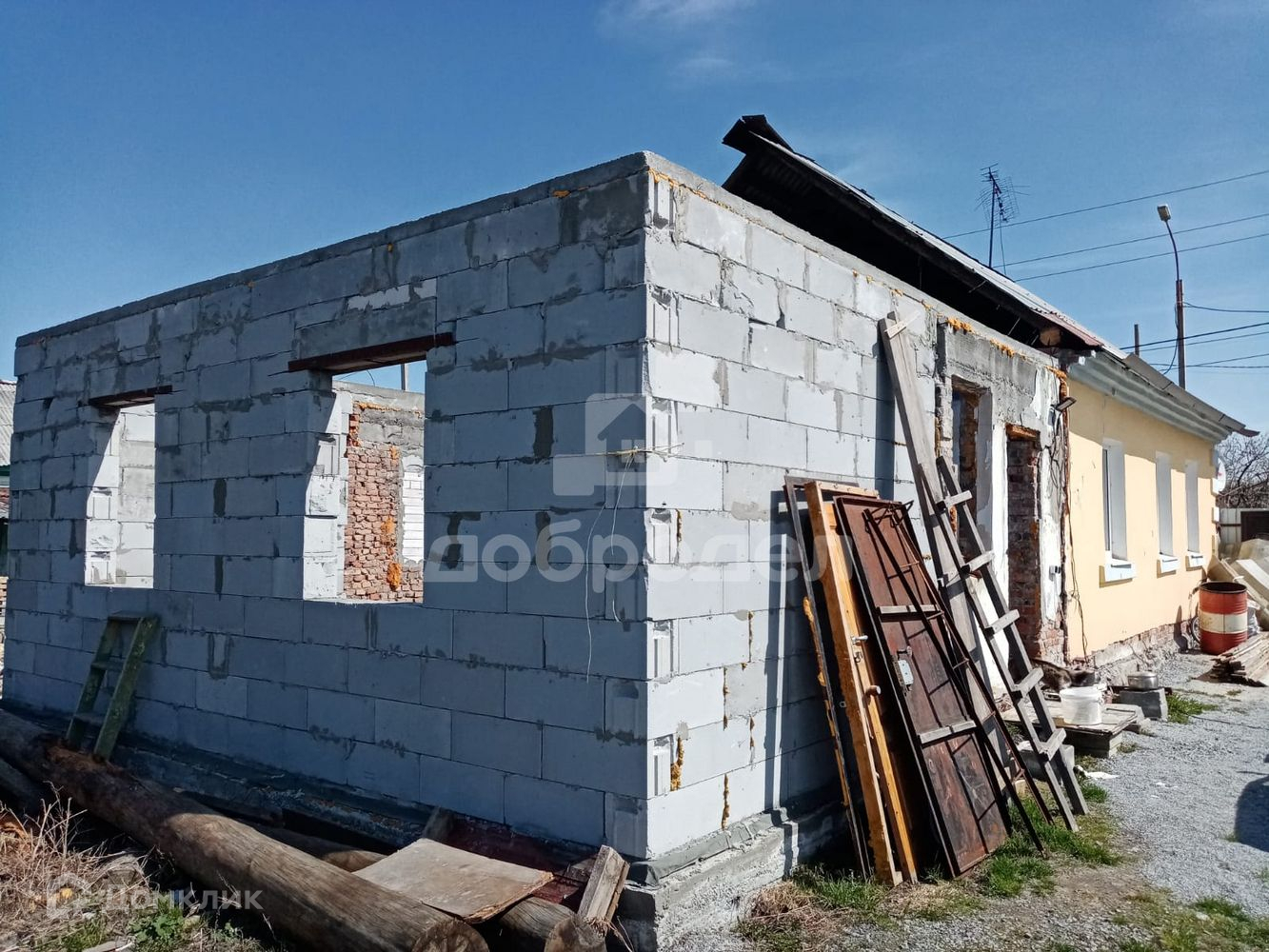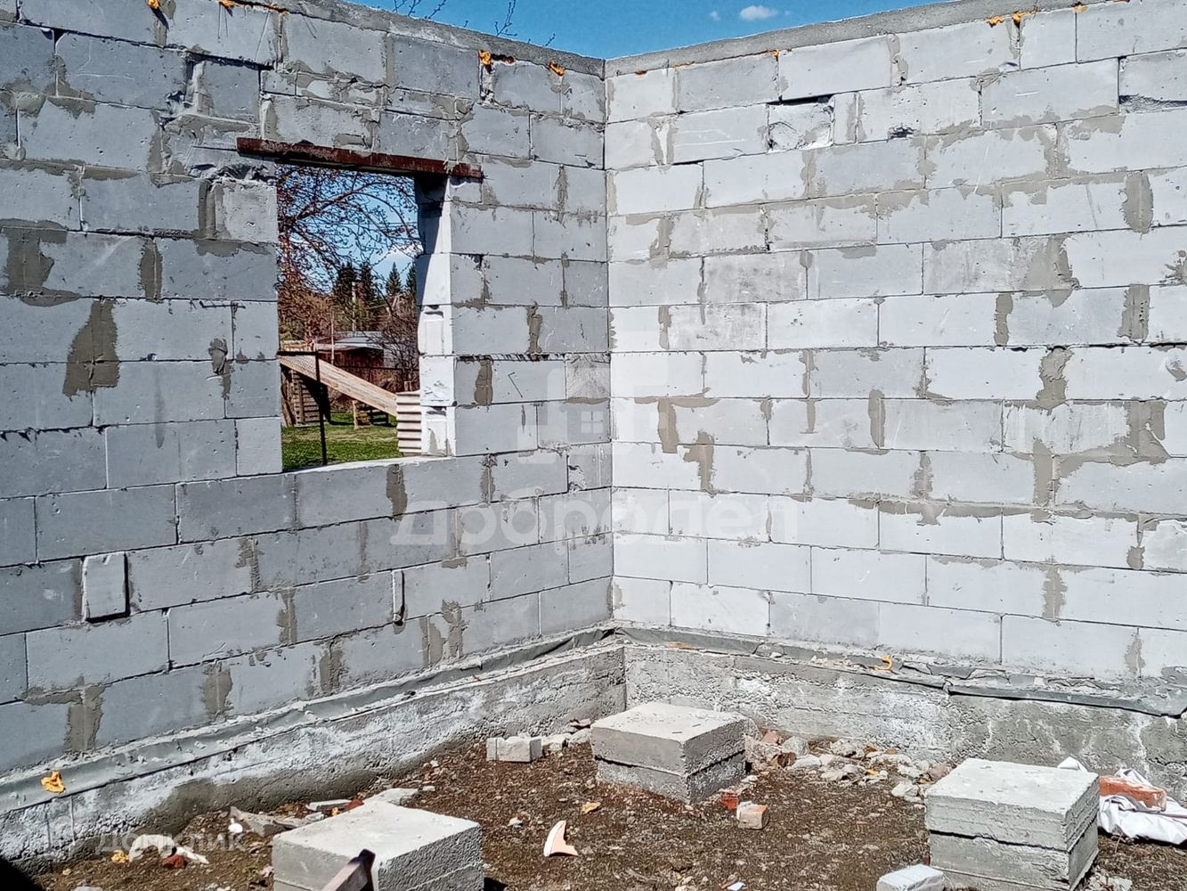 - Есть недостроенный пристрой к дому из блоков (планировалось сделать комнаты), надо заливать пол и сделать крышу.