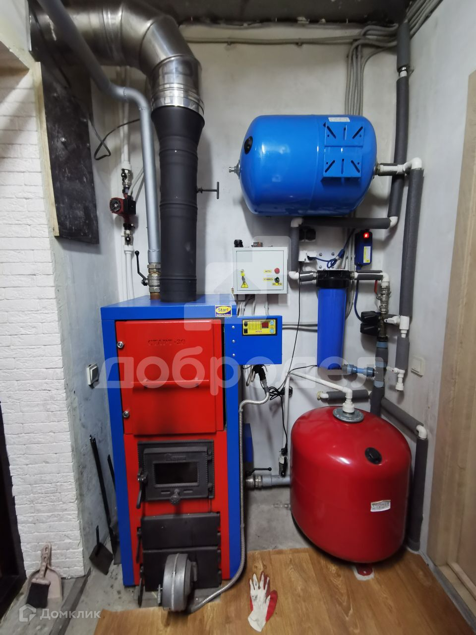 - в доме лестница между первым и вторым этажами металлический каркас обшитый буком.Пластиковые окна Rehau. Система отопления. Твердотопливный котел со встроенными тэнами и электроникой управления котлом. Дымоход сэндвич труба из нержавейки. Буферная емкость для теплоносителя. Собственная скважина глубиной 100 метров. Хорошая система очистки воды и дополнительно для питьевой воды установлена система обратного осмоса.