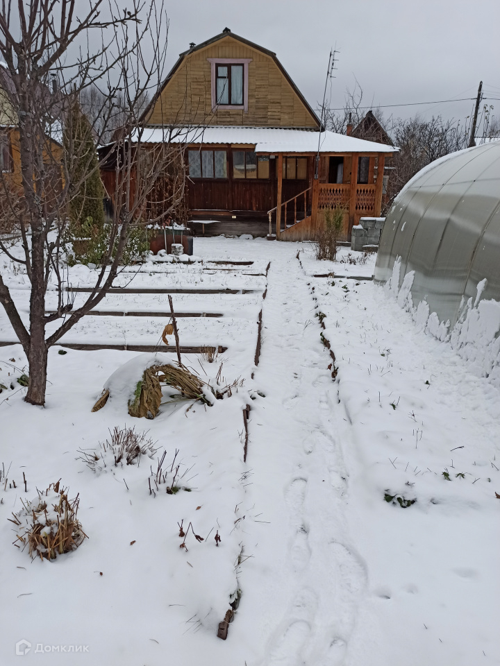 Садовый участок 5 соток. На нем расположены: двухэтажный дом 72 кв.м, баня, туалет, сарай, теплица. Из насаждений: плодоносящие яблони, сливы, ирга, клубника. На участке есть скважина.
