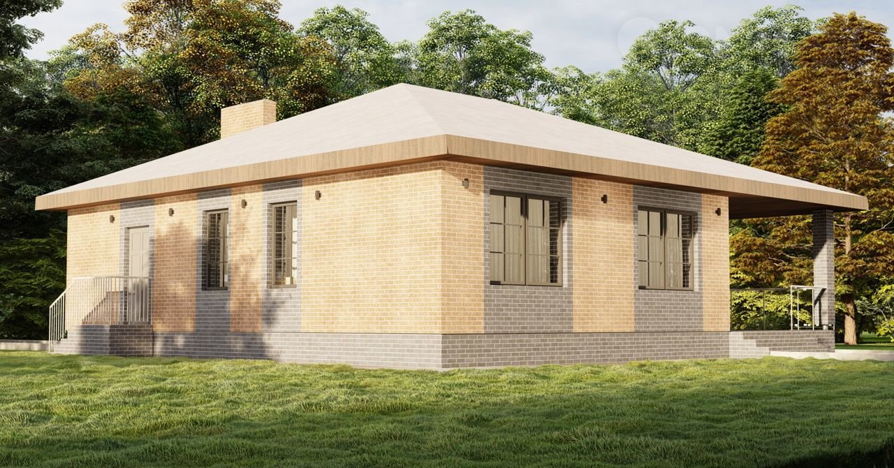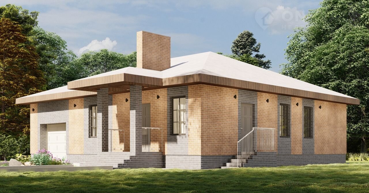 ⚪ Дизайн дома выполнен с использованием облицовочного кирпича двух цветов, что придаёт ему особенный стиль и элегантность.
