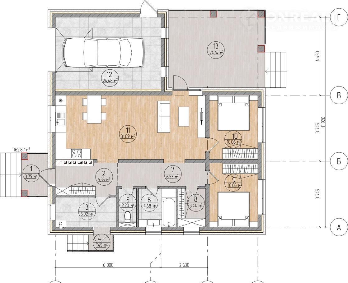 ⚪ Удобные 3 входа: главный через тамбур и два дополнительных через котельную и с террасы.
