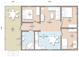 Общая площадь: 59 м2