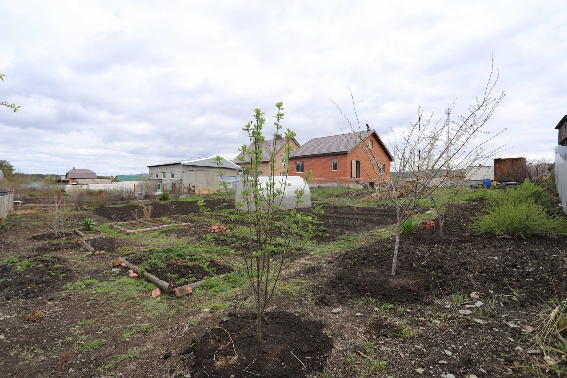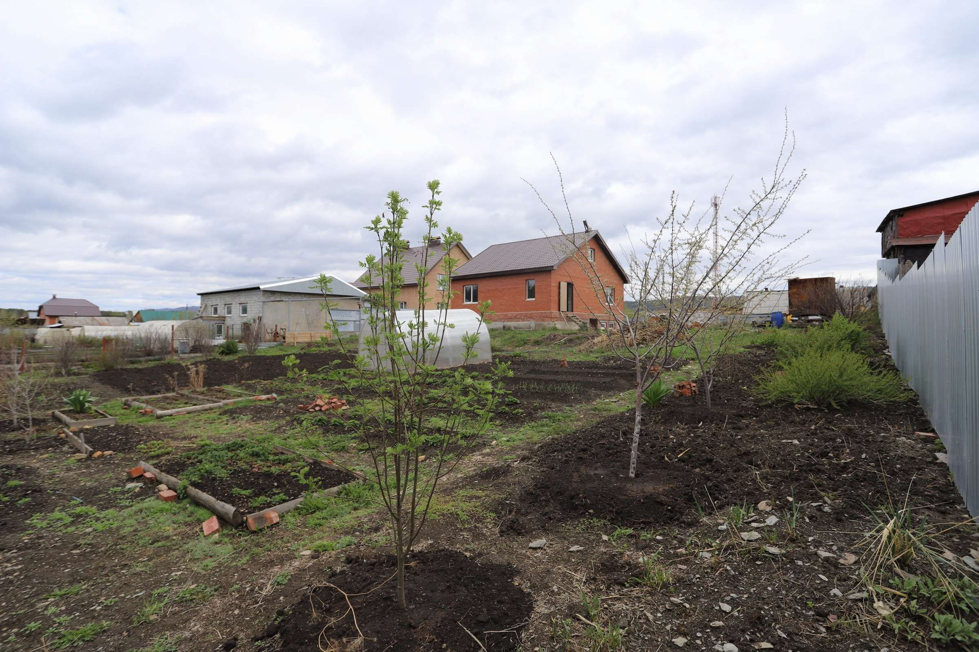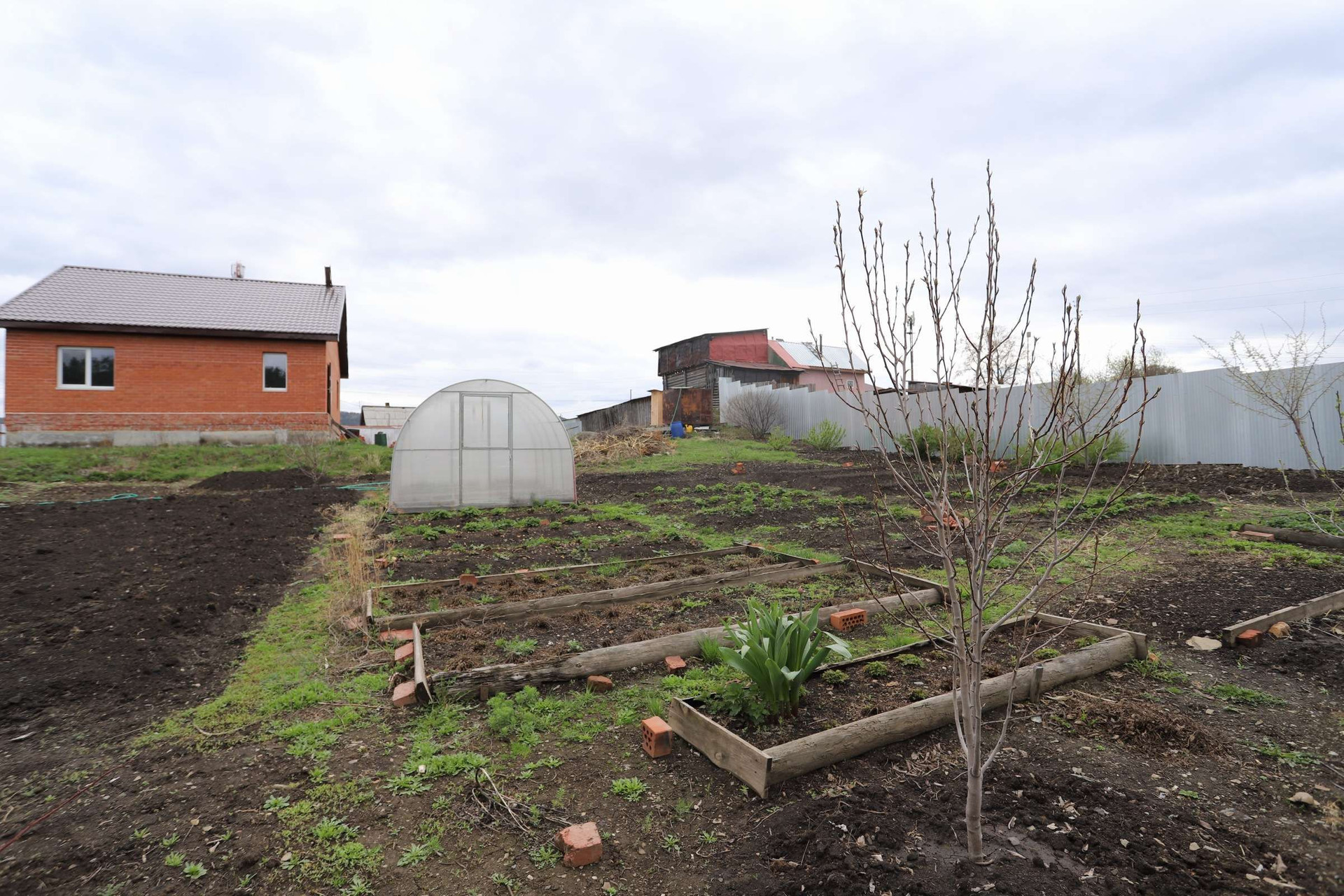 Огород ухожен и разработан, есть теплица из поликарбоната, кусты смородины, вишни, малины. Молодые деревья яблонь, груш и сливы. Бак для полива огорода 5куб.м. (самотёком).