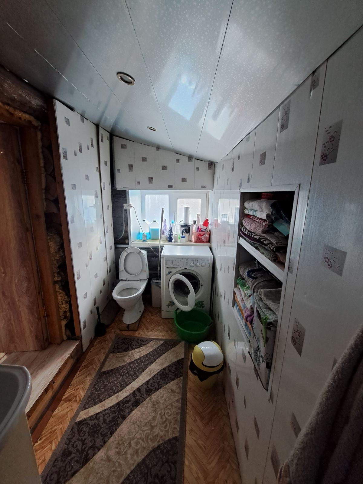 Потолки натяжные, окна все евро, на полу постелен линолеум. В доме все удобства - сан.узел совмещен, имеется душевая кабина. Длинный коридор.