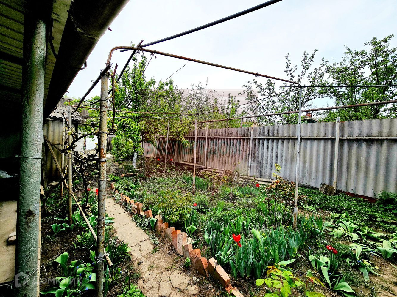 Зона отдыха во дворе с навесом, цветник перед домом. Ухоженный участок земли, посажено множество насаждений, плодовых деревьев (вишня, 4 яблони, фундук, смородина, малина и многое другое).