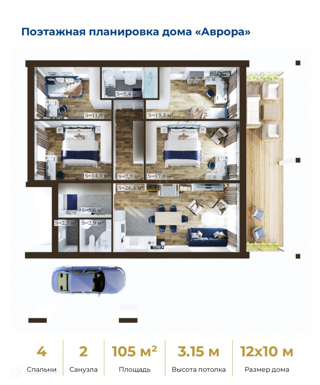 Предлагаем к Вашему вниманию проект "Аврора" площадью 105 кв.м с возможностью выбора индивидуальных комплектации и опций под свои желания.