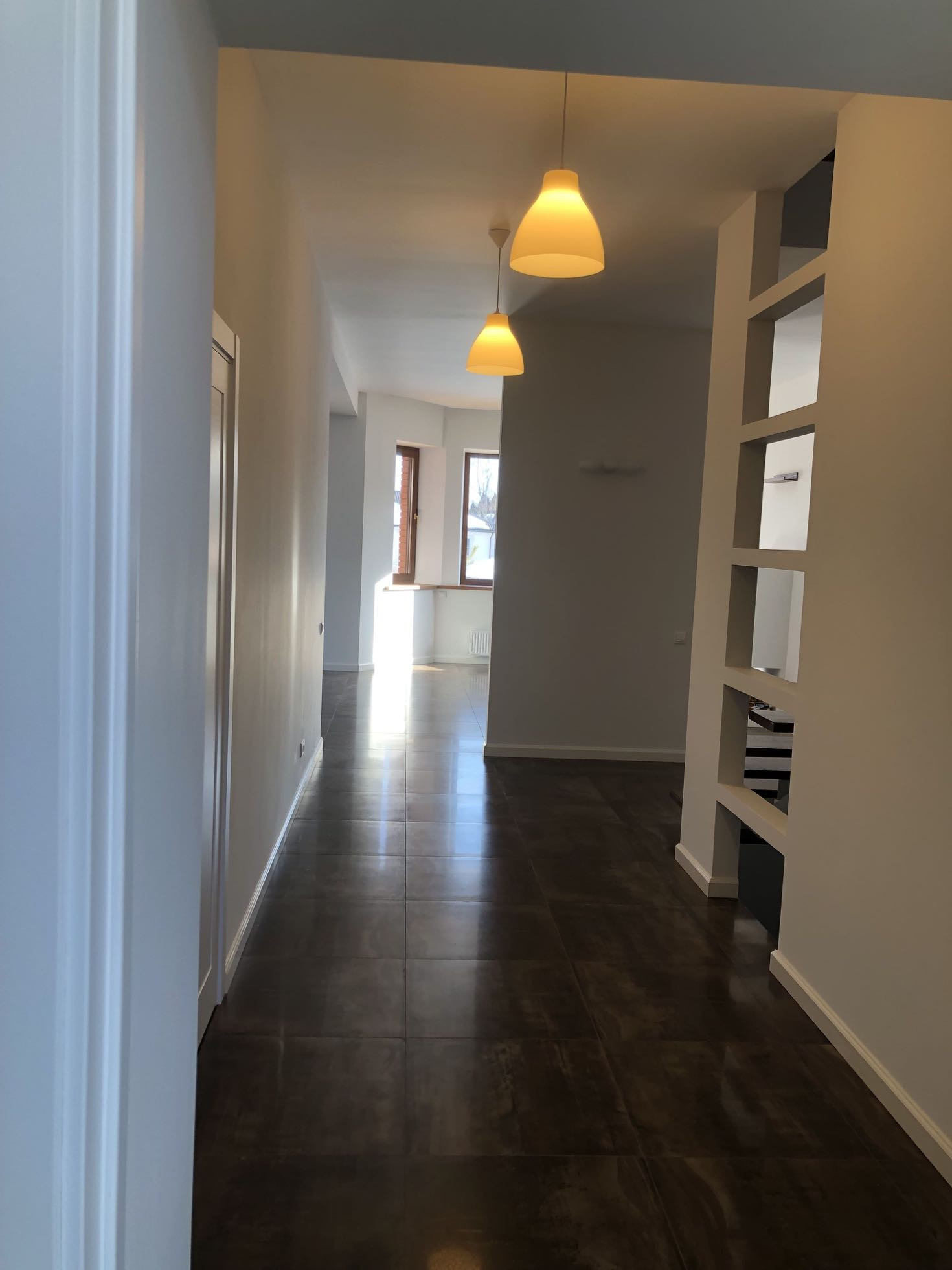 Вся внутренняя отделка выполнена из высококачественных материалов. В доме никто не проживал. Внутреннее пространство очень светлое за счет наличия больших окон. В жилых помещениях размещены кондиционеры. В пространствах, где уложен керамогранит, смонтирована система теплых полов. Установлена охранная сигнализация, а также защитные рольставни.