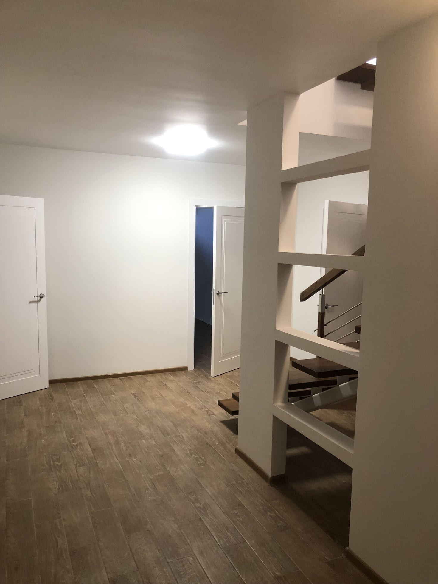Цокольный этаж расположен под всем домом и гаражом (площадь 140 м кв.) из монолитного бетона с высотой потолка 3 метра. Все техническое оснащение дома: санузел, бойлерная, водоподготовка, а также газораспределительные приборы находятся на данном этаже.