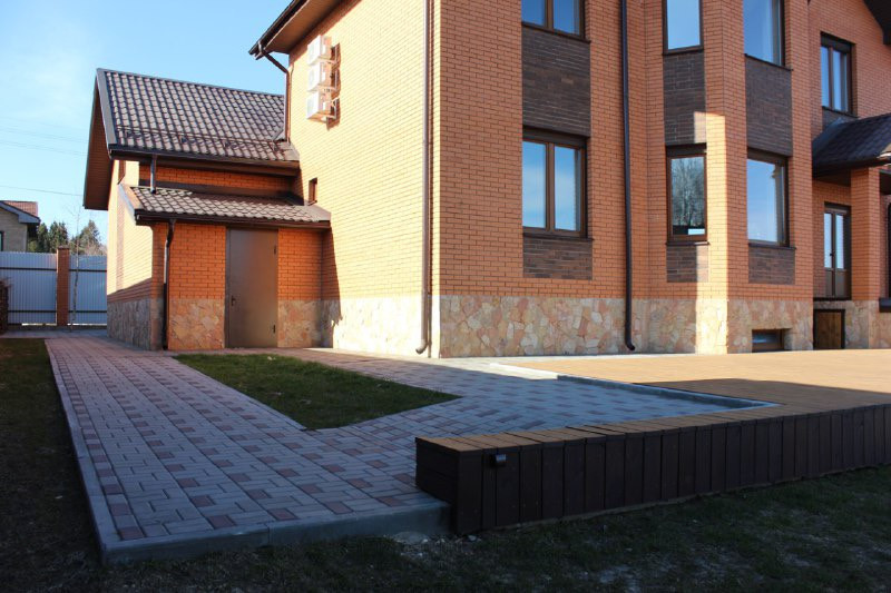Перед домом имеется стоянка на четыре автомобиля, вымощена тротуарной плиткой. Остальная часть участка закрыта газоном. Вертикальная инфраструктура участка имеется в полном объеме (дренаж, водоотведение и т.д.).