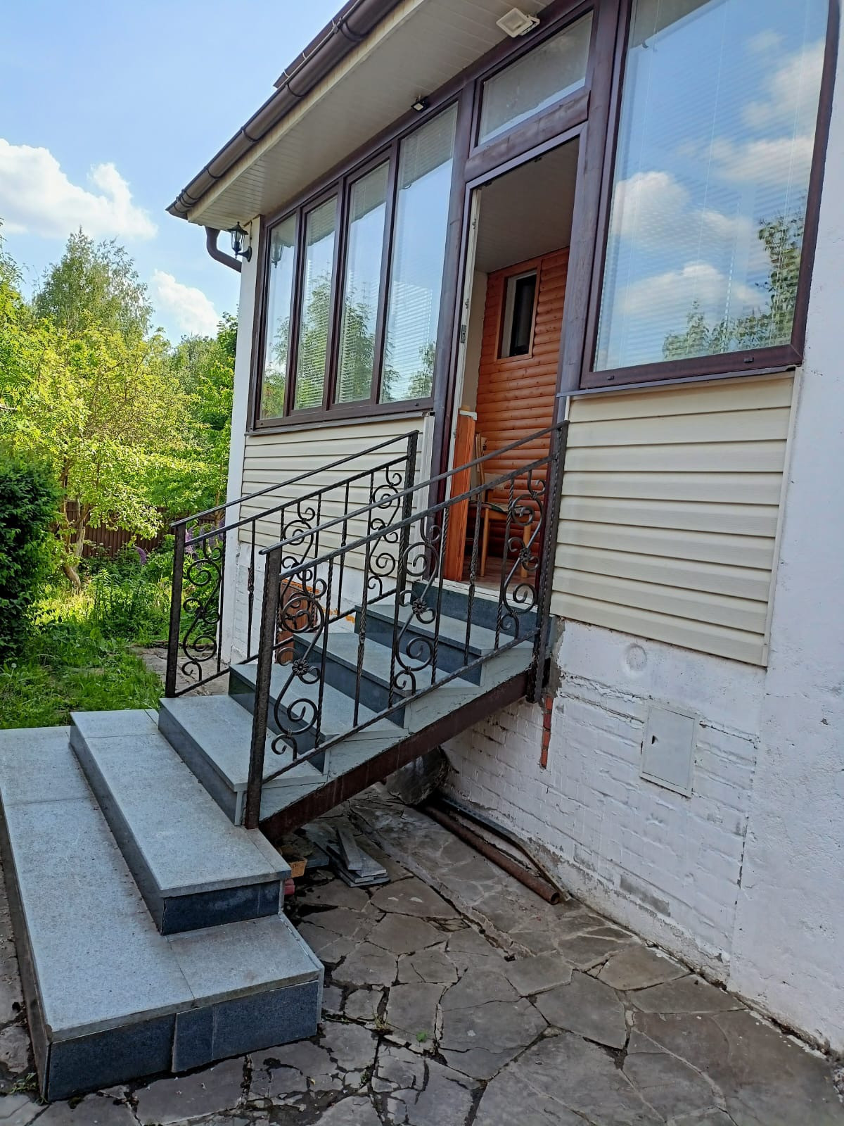 Перед домом расположена закрытая веранда и соответственно вход в дом.