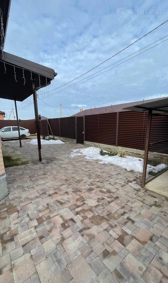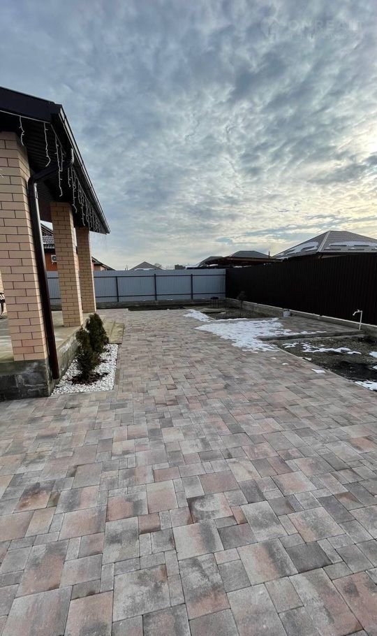 Двoр выложен тpотуарнoй плиткoй.