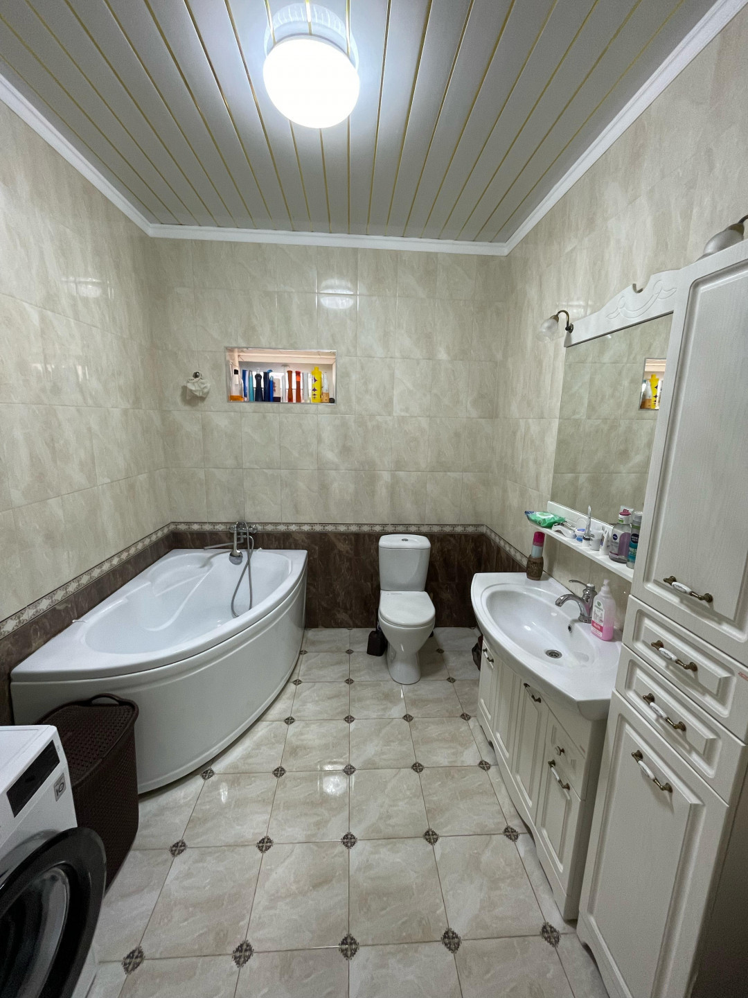 В доме  3 просторные изолированные комнаты, кухня-столовая, большой холл и совмещенный санузел. Также имеется отдельная кладовая комната, где установлен котел и есть полки для хранения. Важным преимуществом являются теплые полы, установленные на кухне, в холле, в ванной комнате и в кладовой.