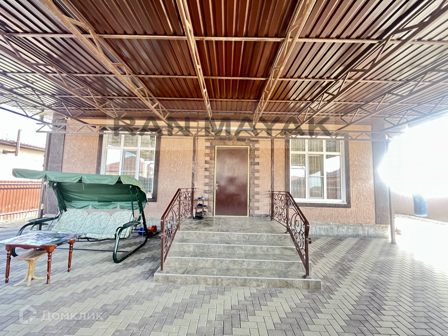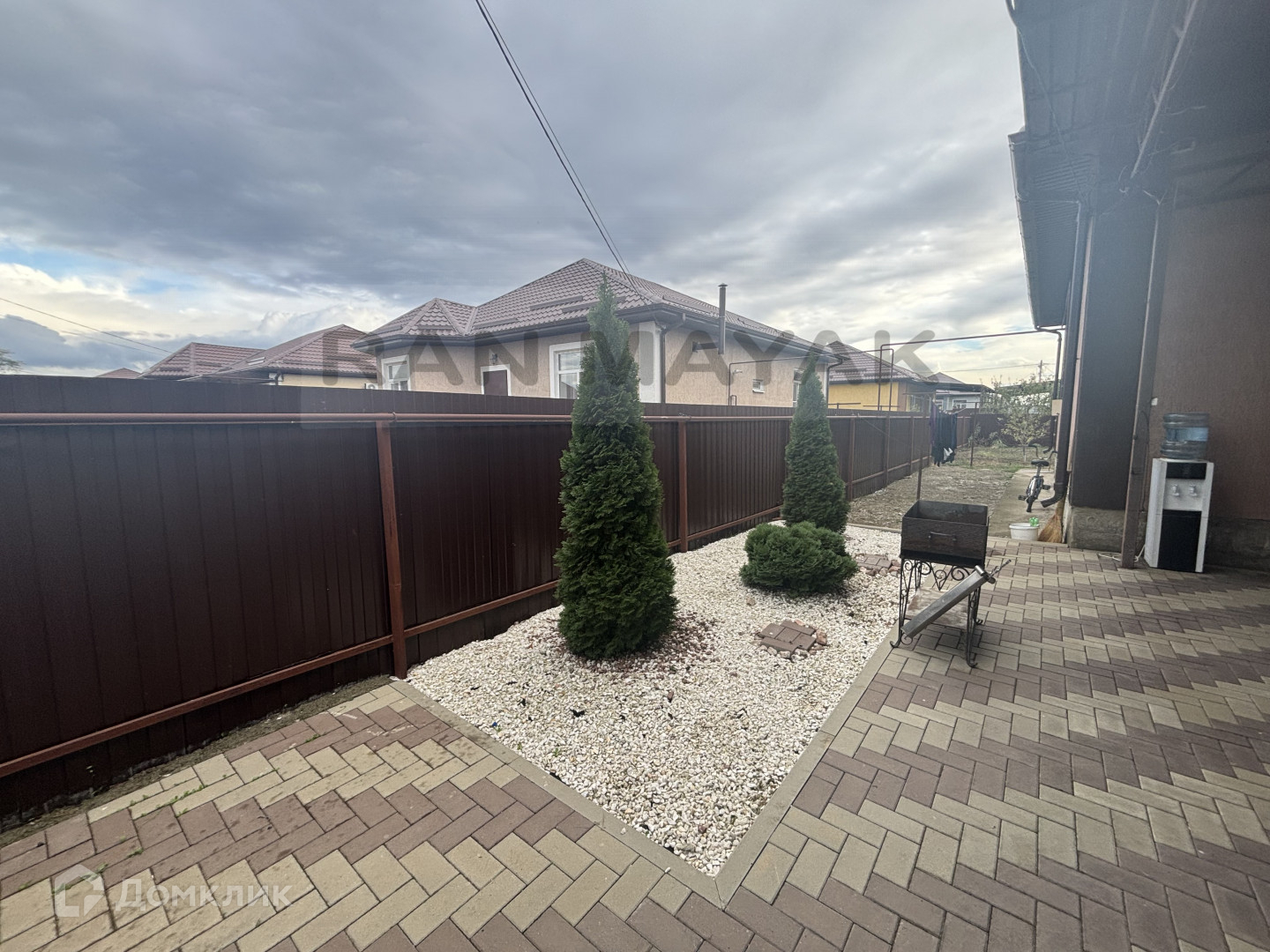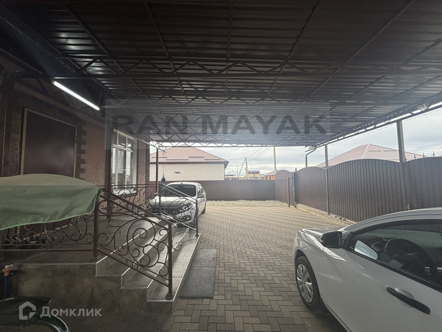 Навес и плитка во дворе, участок с плодовыми деревьями.