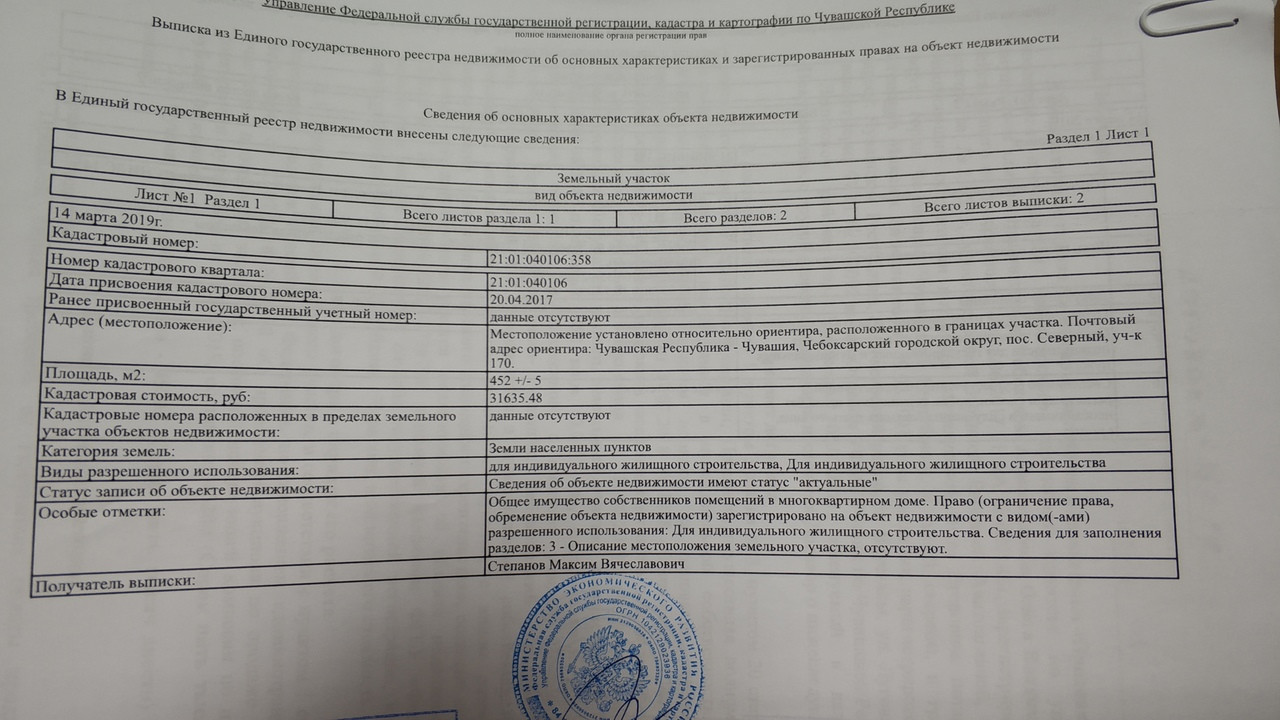 Продается земельный участок, с кадастровым номером 21:01:040106:358 и 21:01:040106:359 расположенный по адресу: Чувашская Республика, Чебоксарский городской округ, поселок северный, участок № 170, 171 площадью 900 кв. метров. Категория земельного участка - земли населенных пунктов, вид разрешенного использования - для строительства индивидуального жилого дома.