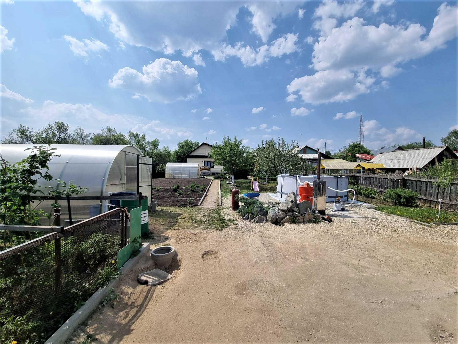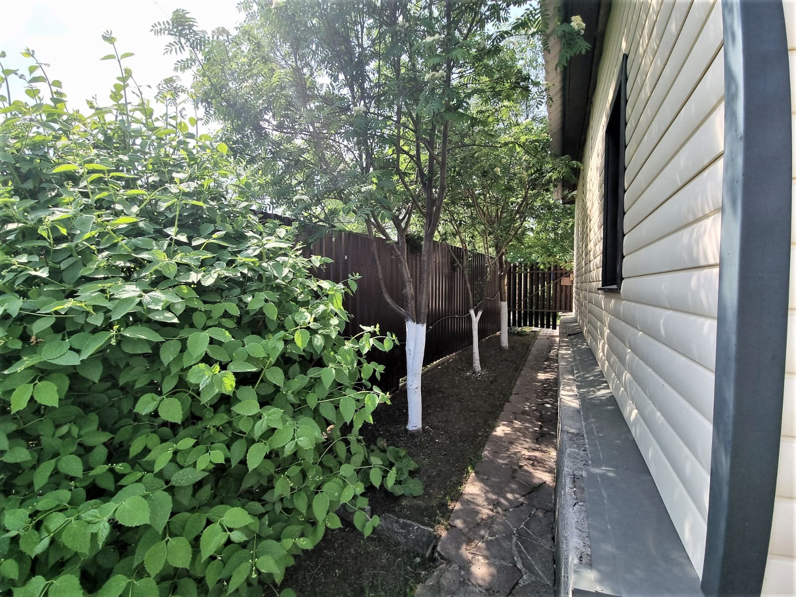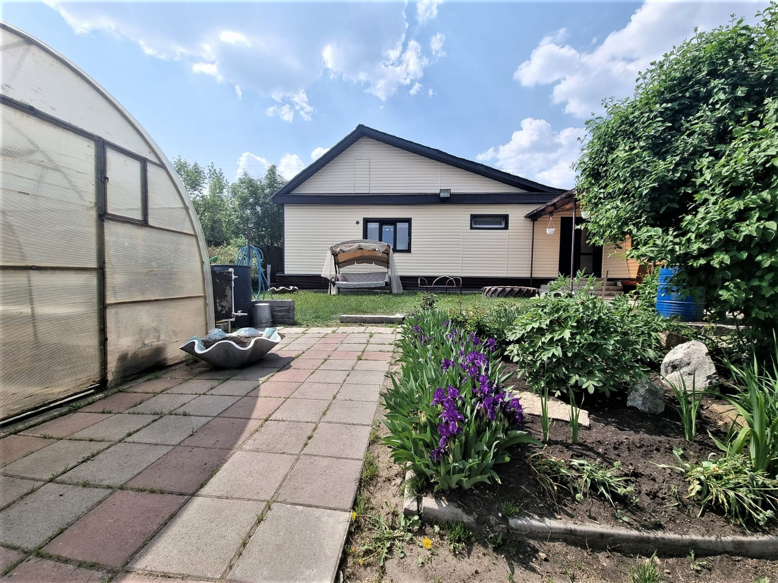 Отдельного внимания достоин сад. В котором высажено много плодородных деревьев, кустарников, цветов. В саду установлены дорожки. Две теплицы.