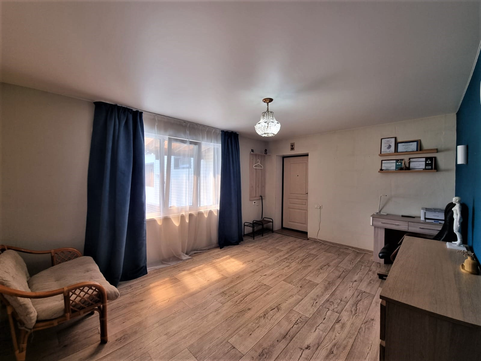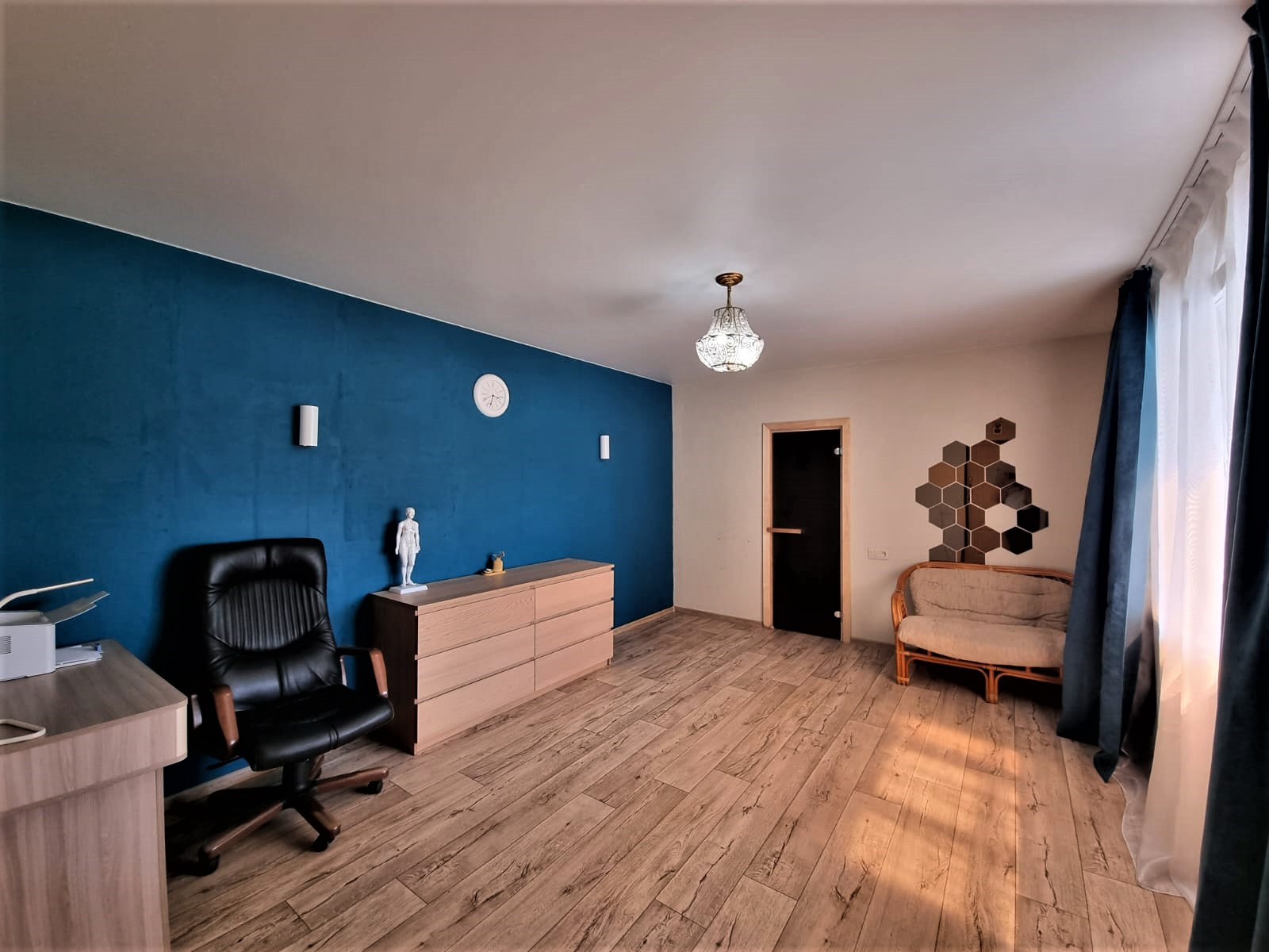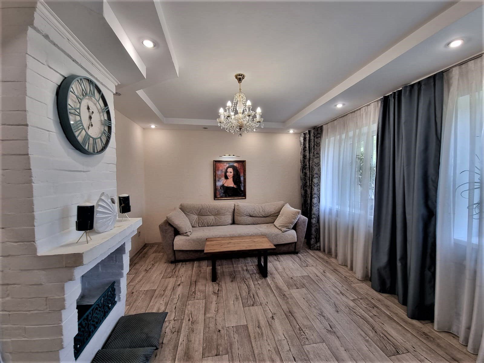 В доме отличный современный интерьер. Находиться в доме сплошное удовольствие, душевная атмосфера уюта. В интерьере дома преобладают светлые пастельные тона. Все сделано с любовью и душой.