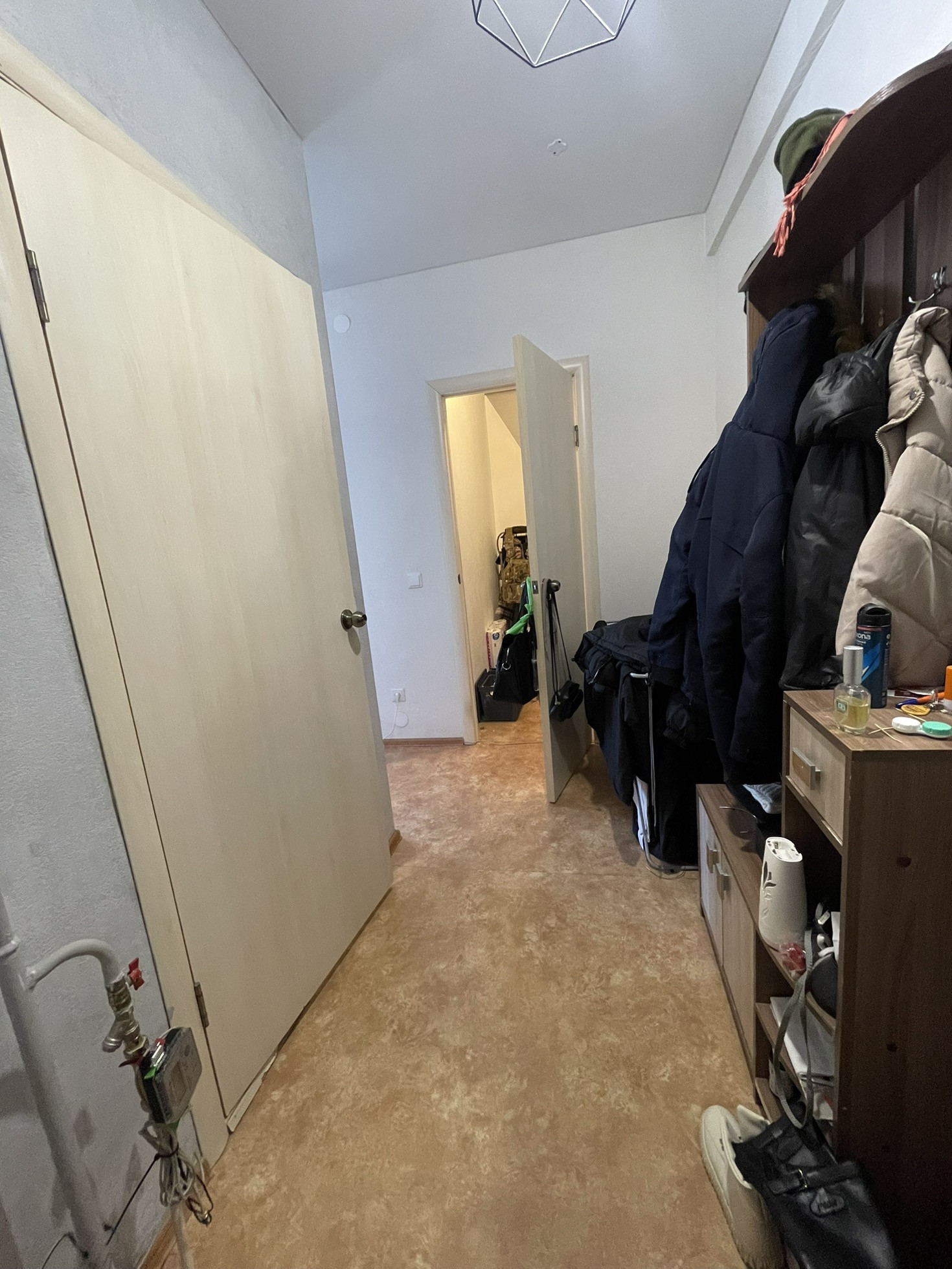 В квартире натяжные потолки, имеется гардеробная. В квартире остается кухонный гарнитур( барная стойка и 2 барных стула) , варочная панель, комод, прихожая, кравать и матрас анатомический и артопедический.