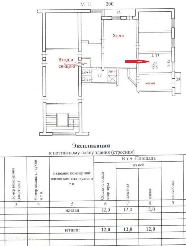 Общая площадь 12 м2