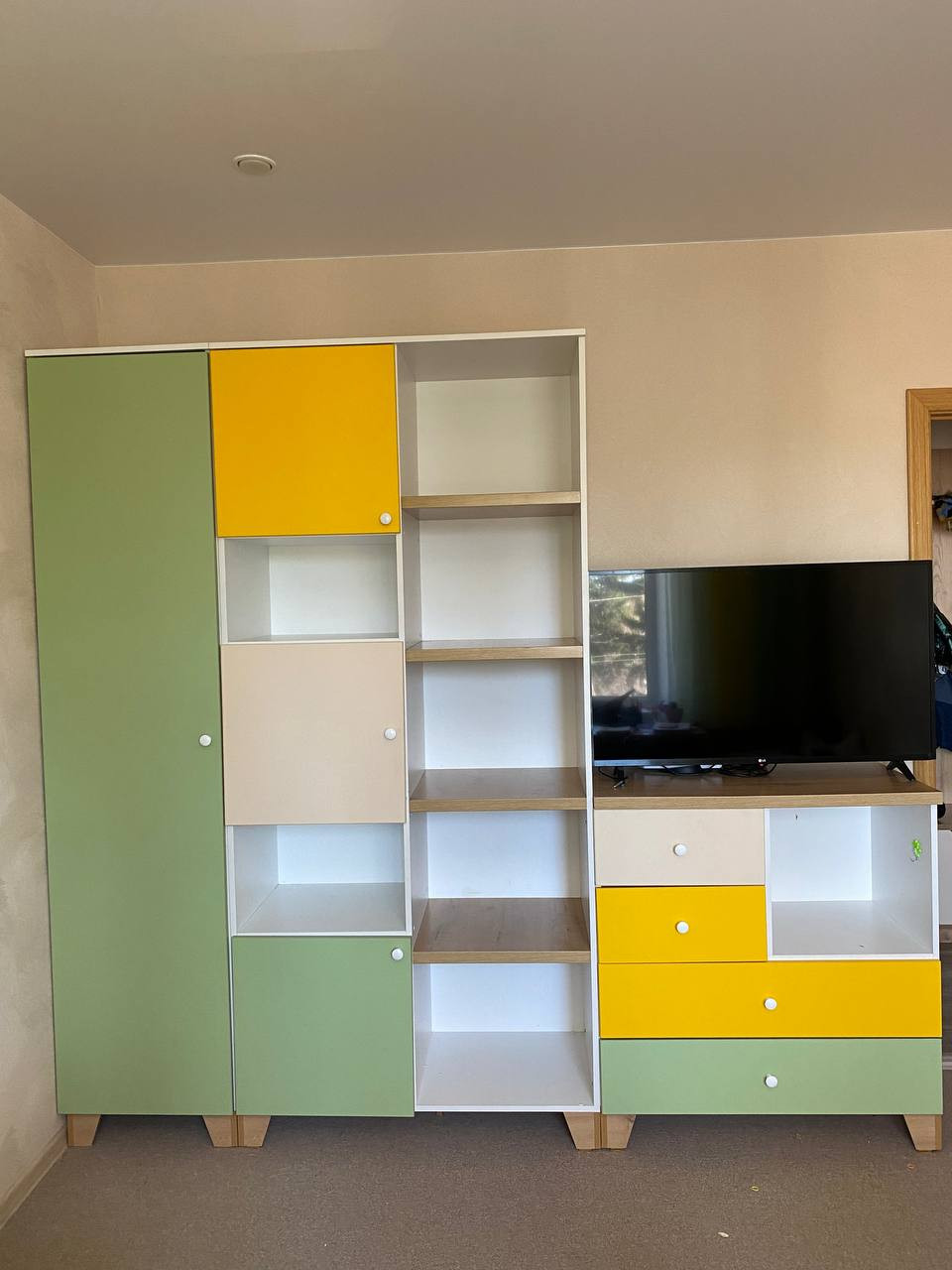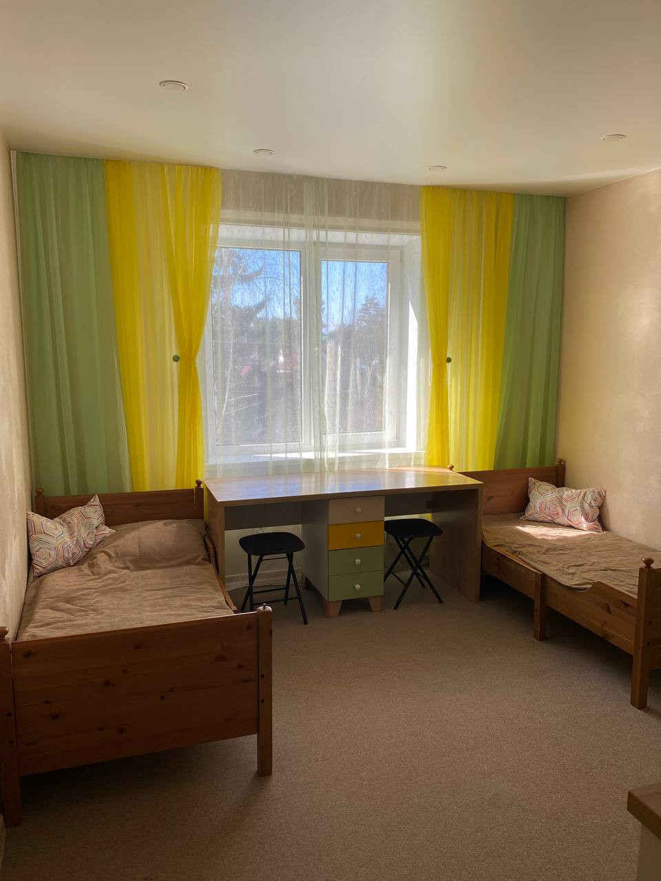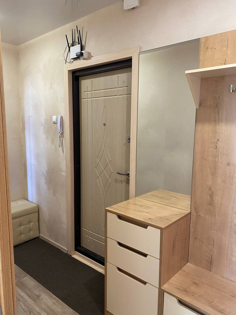В детской комнате шкаф, рабочий стол, комод , 2 кровати ИКЕА. В зале: рабочий стол и стул, "стенка" ИКЕА. Установлен водонагреватель.