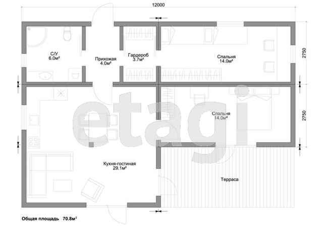 Общая площадь 70 м2