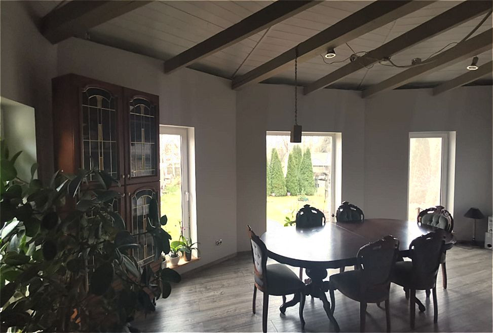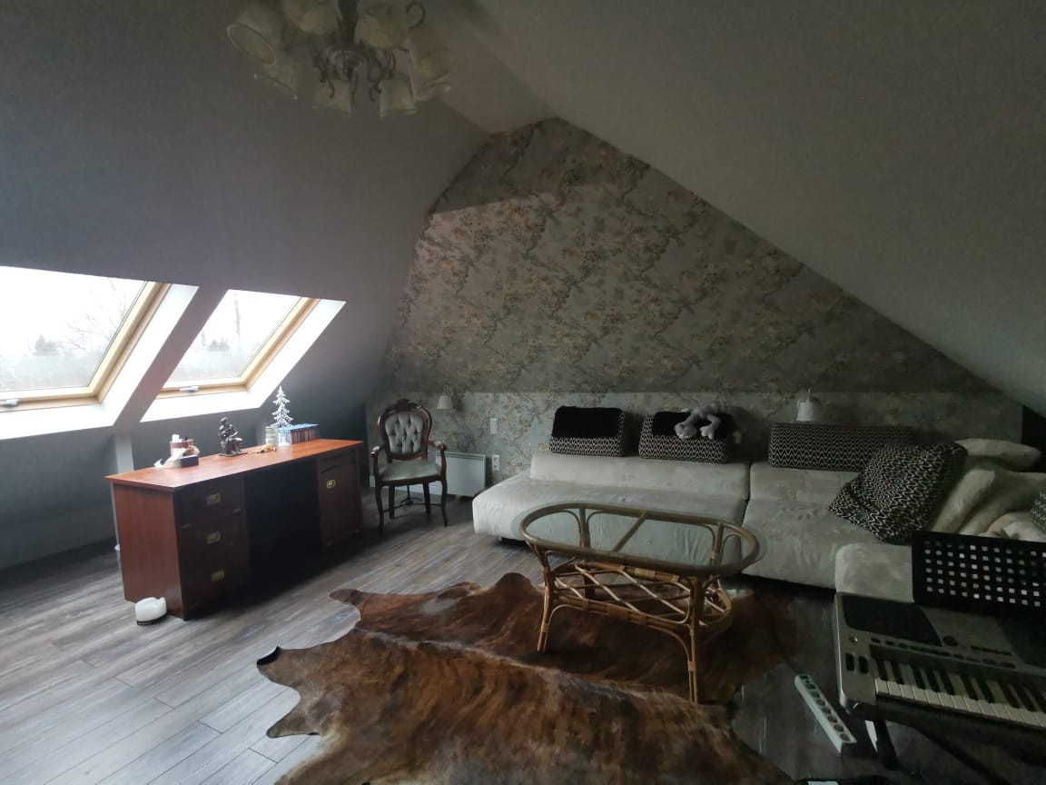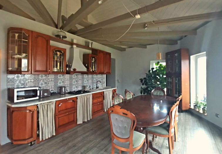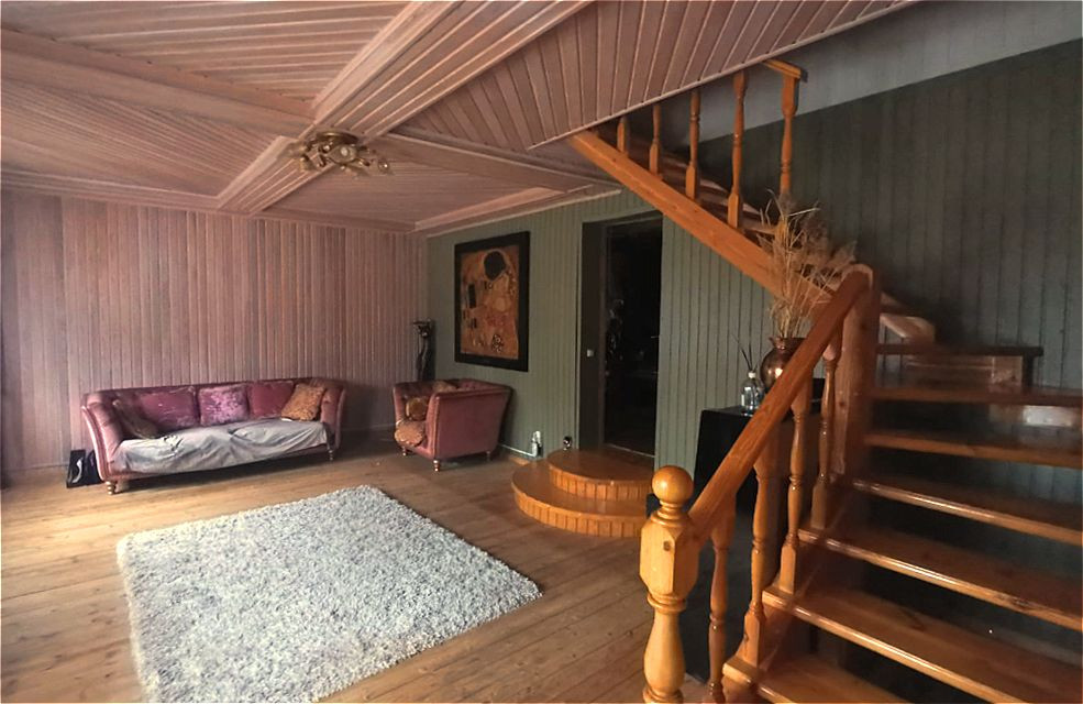 Уютная гостиная отделана вагонкой (без сучков), также имеет дизайнерский потолок с фальшбалками. На второй этаж из гостиной ведёт удобная лестница , где расположены 2 спальни, кабинет, санузел и душевая. Коммуникации: вода из колодца ( в бойлерной установлена станция водоочистки), канализация -локальная, электричество-3 фазы 9 кВт, отопление-электрическое. В бойлерной установлено оборудование для предстоящей газификации(по плану в 2022 году).