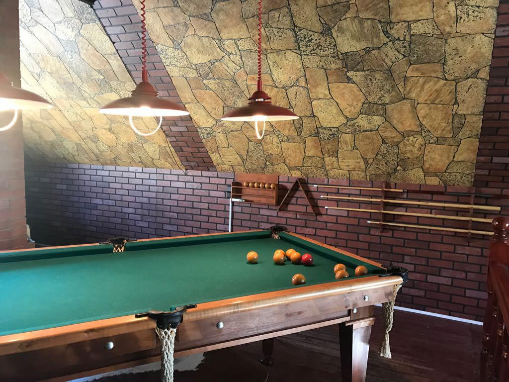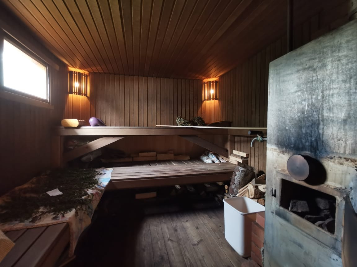 На участке находится двухэтажная баня ( сруб из шлифованного бревна). На первом этаже оборудована настоящая русская парная, небольшая комната отдыха с камином и кухня-столовая. На втором этаже большая комната отдыха с бильярдом. Можно собираться большой компанией, места хватит всем!