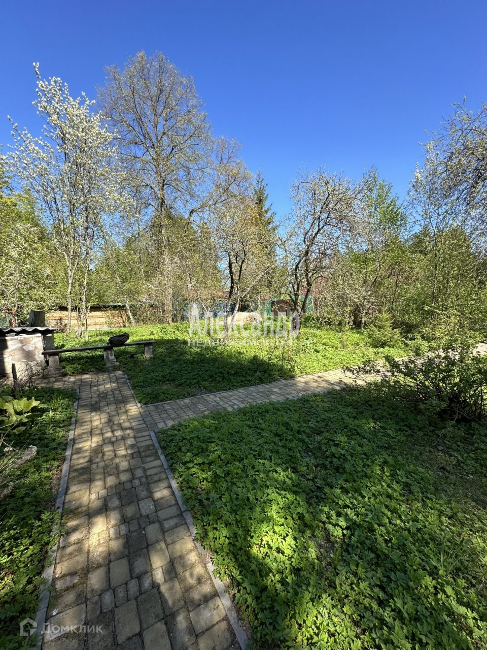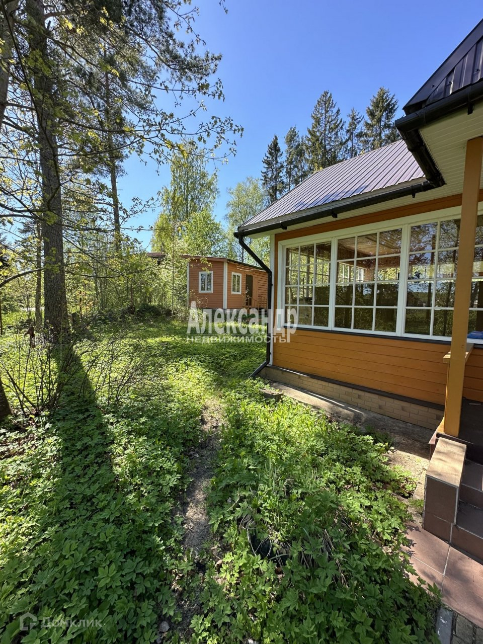 Участок довольно ровный, горизонтальный, расположен в некотором отдалении от дороги, соседи с трёх сторон. Сзади и сбоку участка деревья, в основном ели.