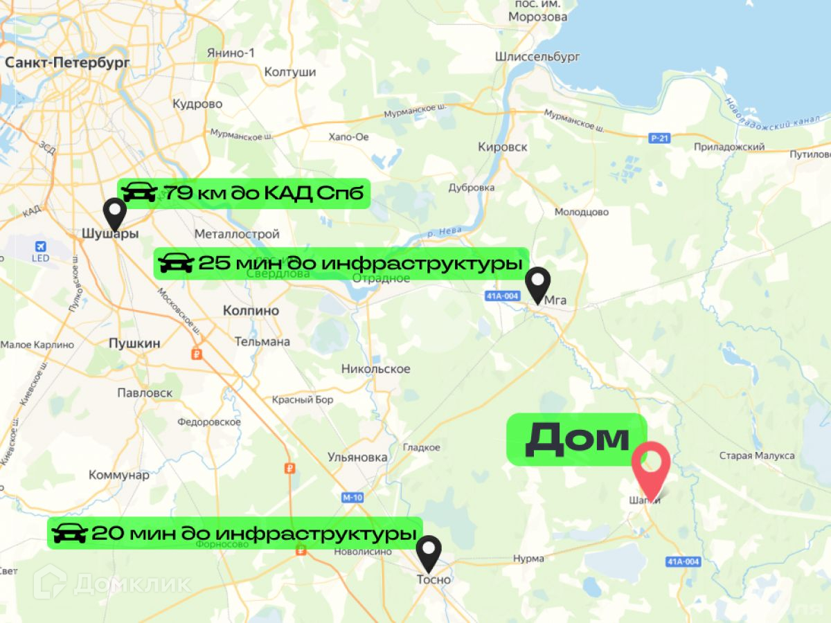 На автомобиле до КАД менее 80 км езды. На выбор несколько вариантов маршрута. В том числе скоростная трасса Москва - Санкт Петербург.