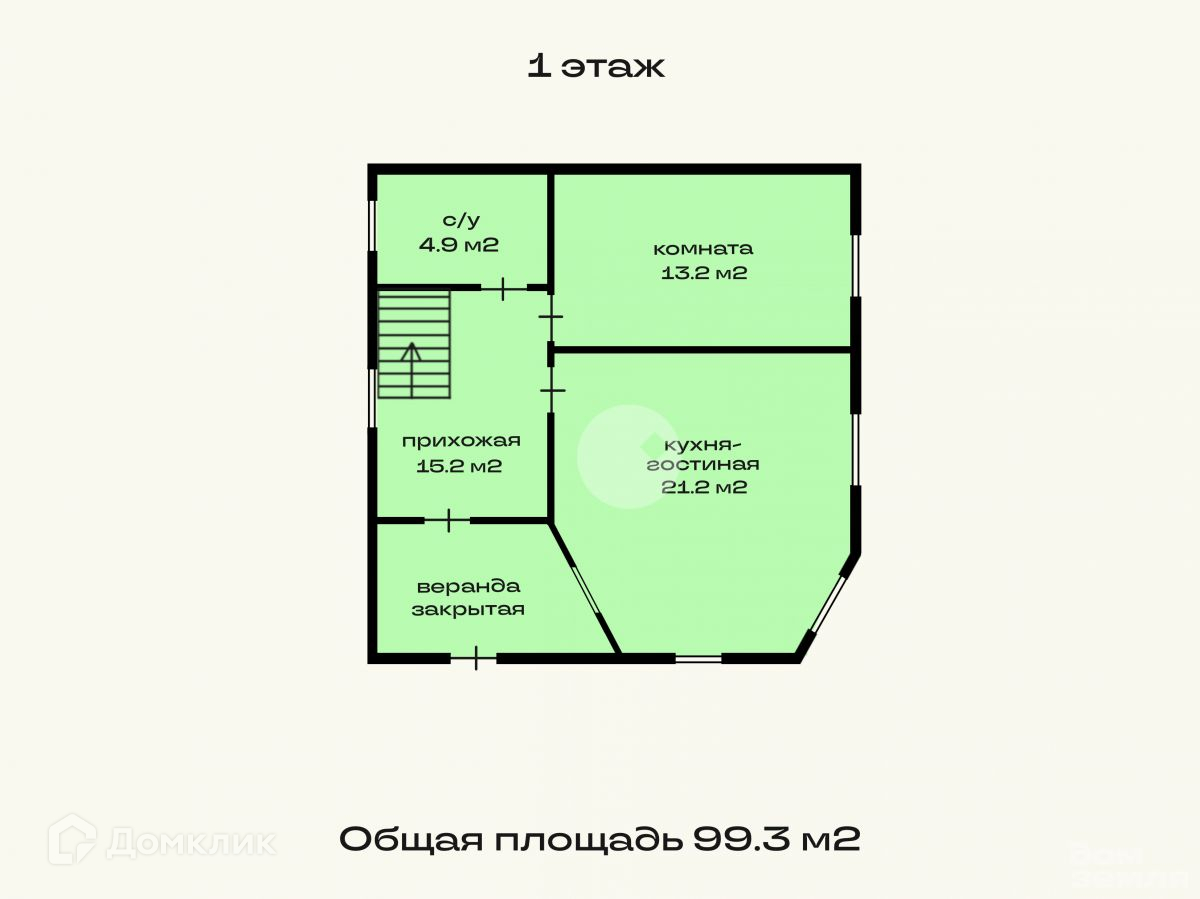 1 этаж - закрытая веранда, прихожая, кухня, спальня, санузел.