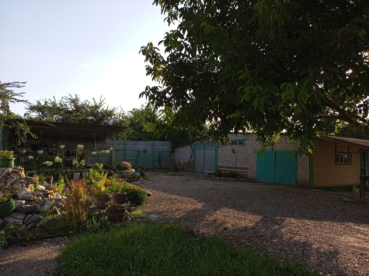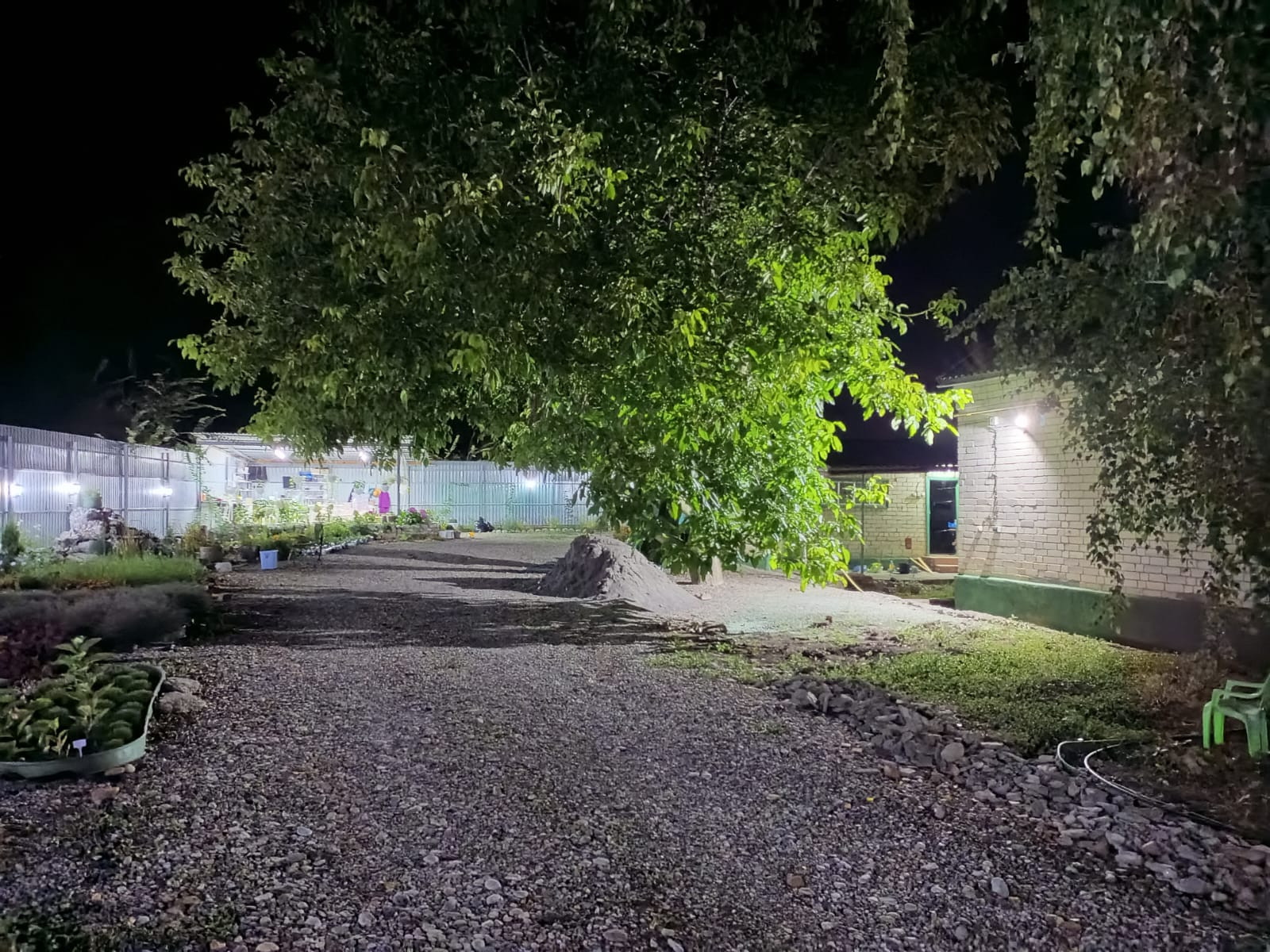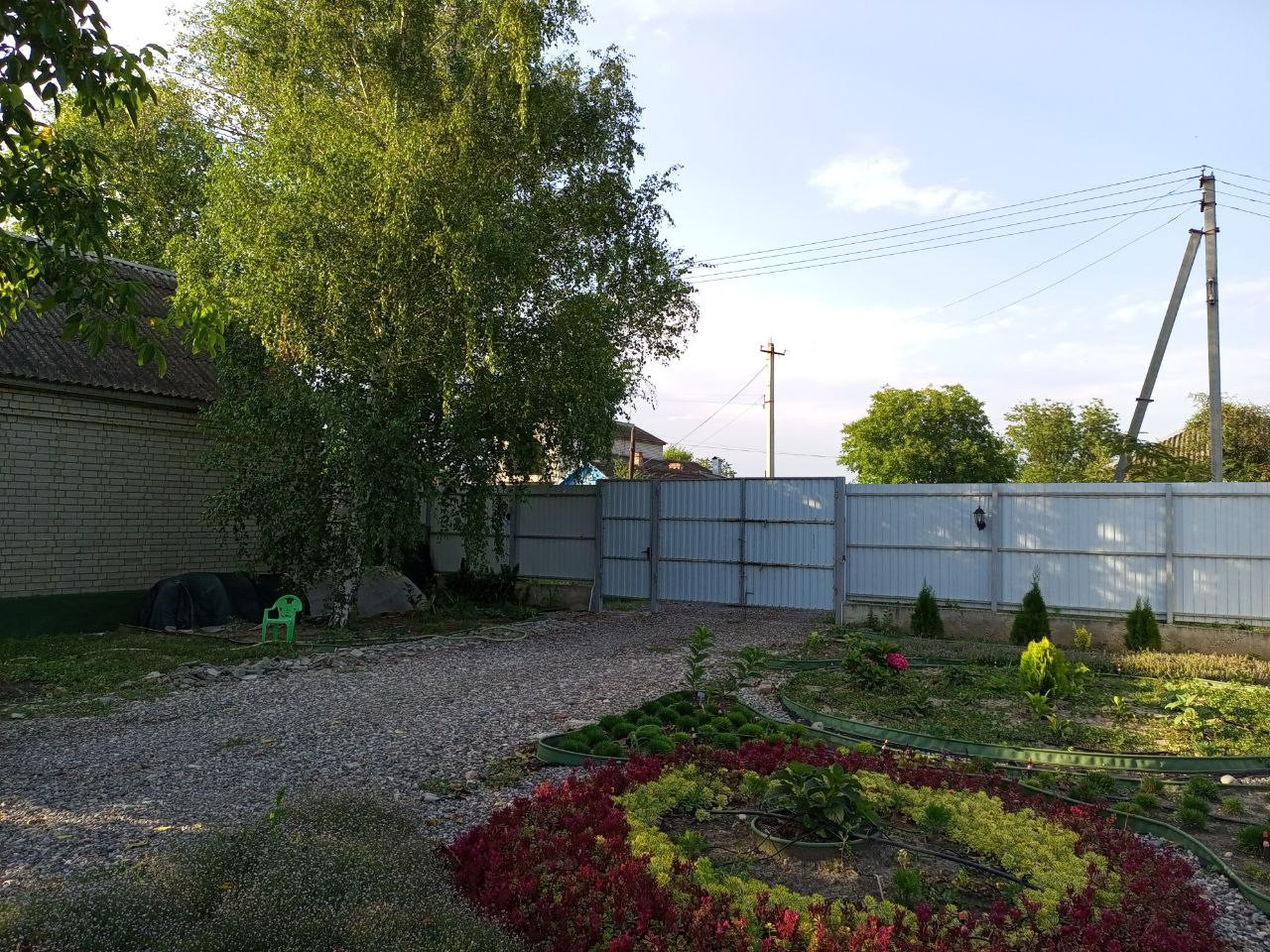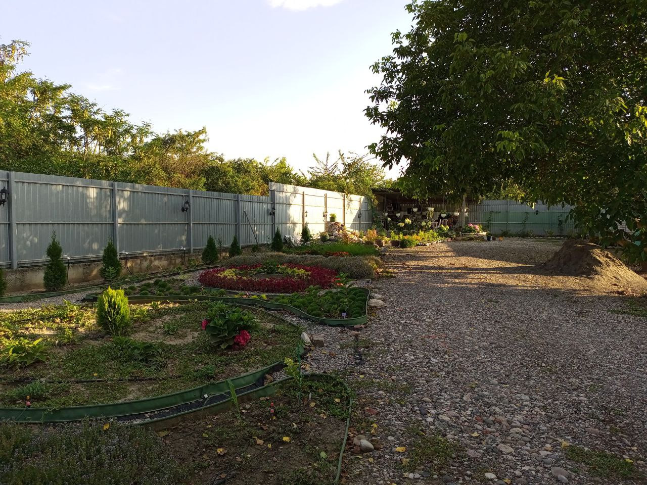 Благоустроенный двор с освещением и разводкой воды по периметру. Все сделано под капельное орошение.