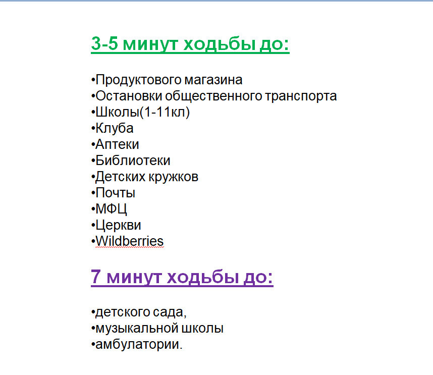 На улице продуктовый магазин(2 минуты ходьбы). 5 минут ходьбы до остановки, школы, клуба, аптеки , почты, МФЦ, библиотеки и церкви. 7 минут ходьбы до детского сада, музыкальной школы и амбулатории.