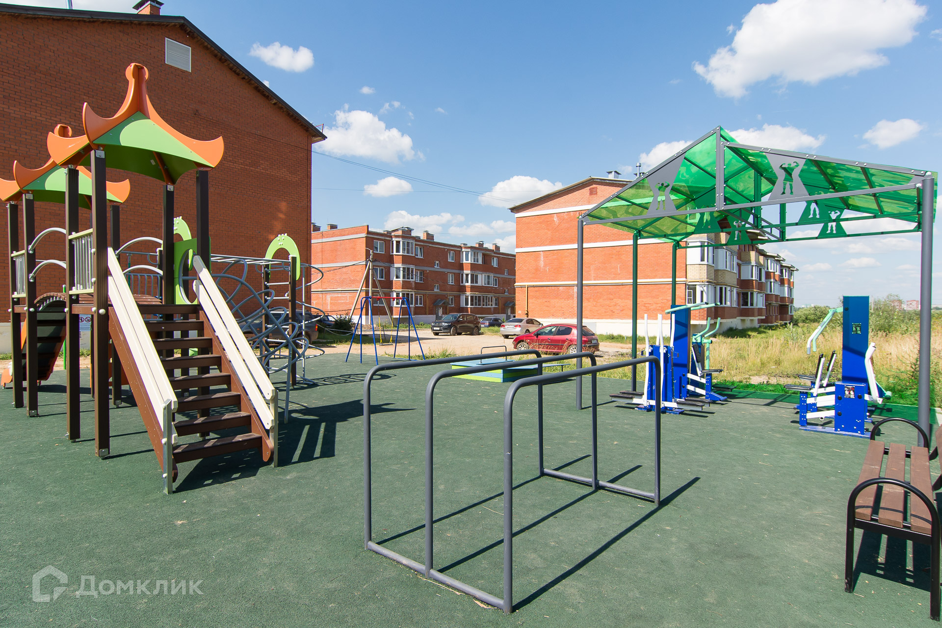Детская площадка во дворе — удобно для игр детей.