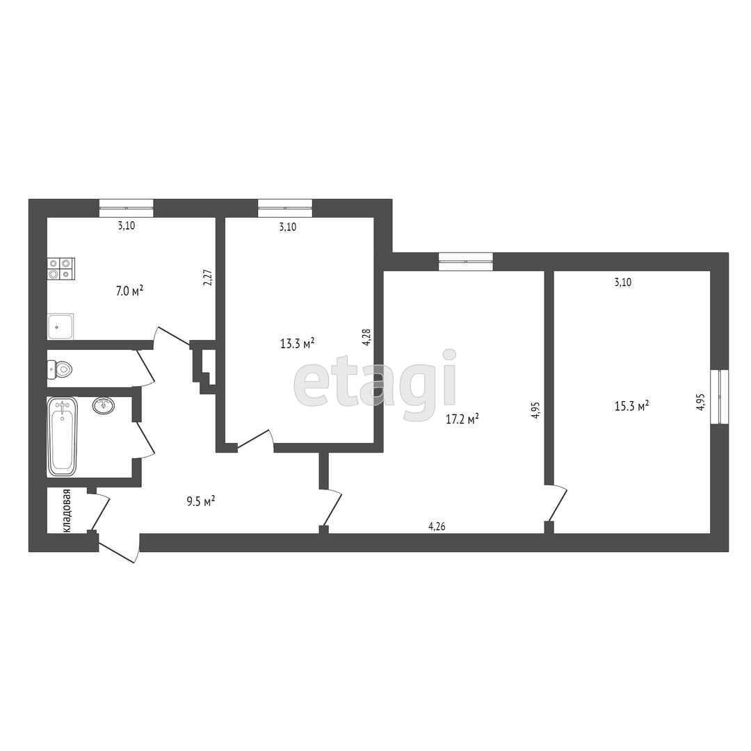 Общая площадь 66.6 м2