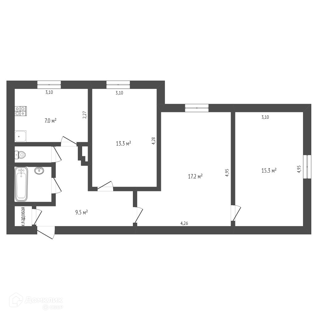 Данная квартира - это ваша инвестиция в будущее, сейчас комнаты спокойно можно сдавать, а в перспективе выкупить и еще одну комнату.