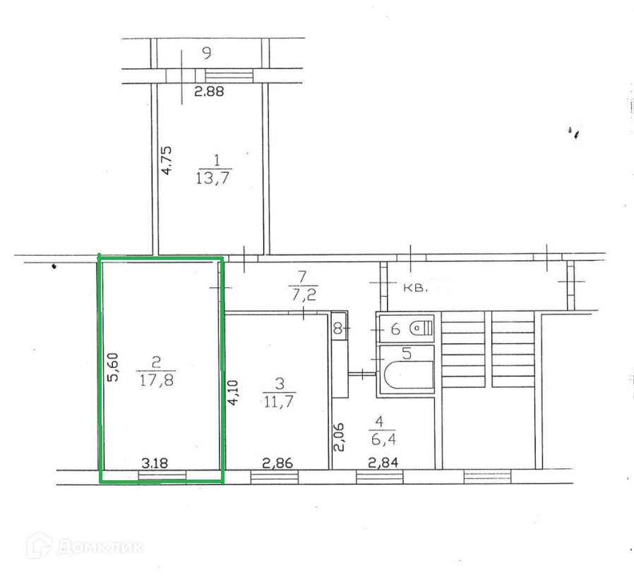Жилая площадь 17.8 м2