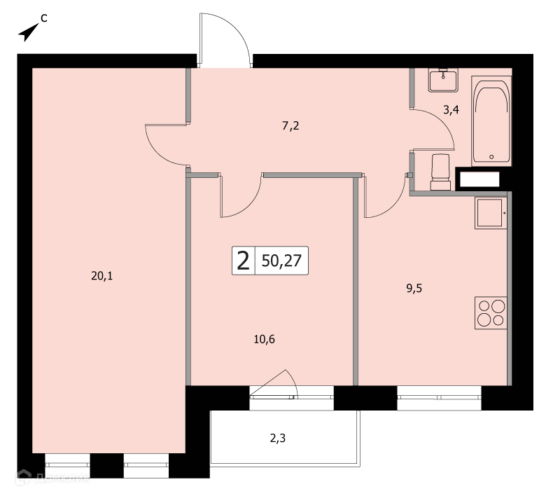 Общая площадь 50.27 м2
