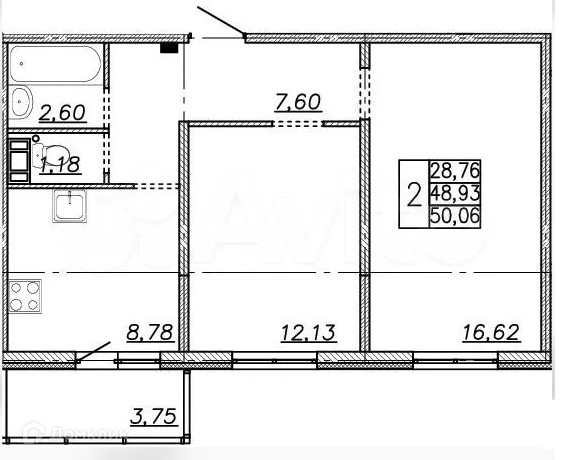 Общая площадь 49.1 м2