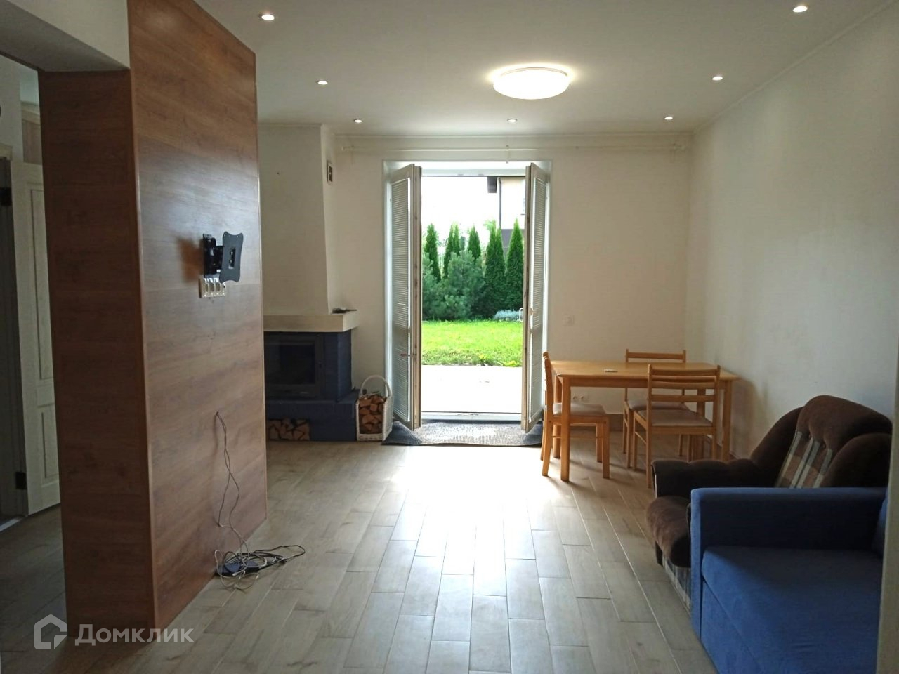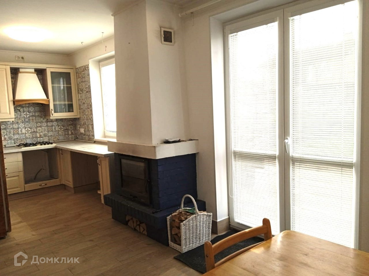 Первый этаж: кухня- гостиная 30 кв.м с выходом во внутренний двор, действующий камин отапливает 1 и 2 этаж. Жилая комната 8 кв.м. Санузел, прихожая и подсобное помещение (где располагается электрокотел, насосная станция).