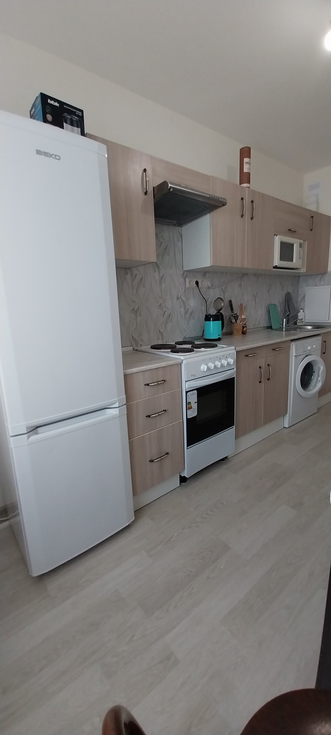 Дом сдан недавно. Обслуживает Управляющая компания, все работает, все подключено. Квартира находится на 1 этаже. 2 квартиры на этаже со своей железной дверью. Во второй никто не живет. В квартире никто современный, чистый, аккуратный ремонт, хорошая планировка. Комнаты солнечные, теплые 16 и 12 метров все мебелированные. На кухне тоже есть все необходимое. Санузел совмещенный, укомплектованный.