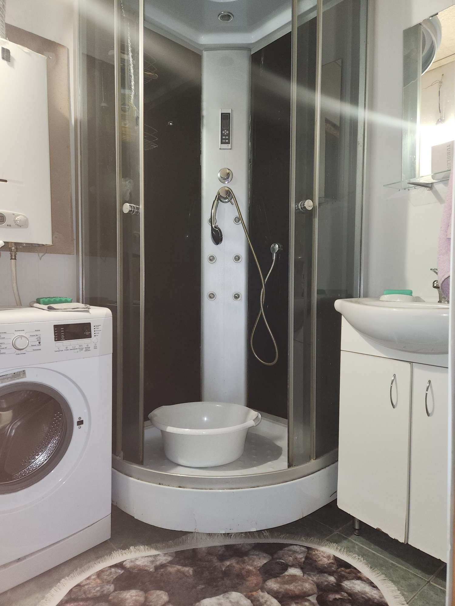В квартире есть все необходимое для комфортного проживания. Сделан косметический ремонт. В комнатах и на кухне есть мебель. На кухне установлен холодильник. В гостиной  телевизор, а в ванной комнате  стиральная машина и душевая кабина. Квартира светлая, окна выходят как на улицу, так и во двор. Также имеется балкон, который станет отличным местом для утреннего кофе или вечернего отдыха.