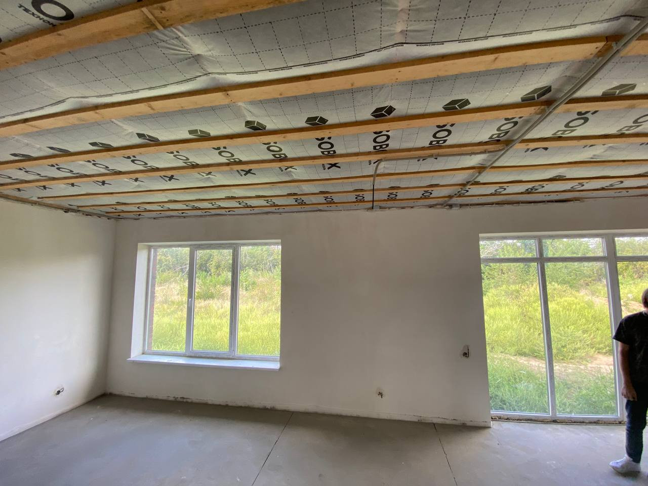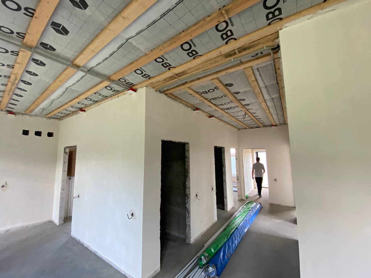 В доме выполнена предчистовая отделка: