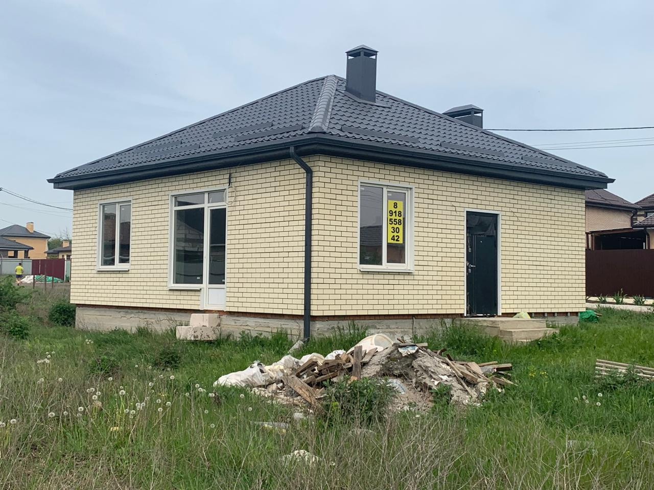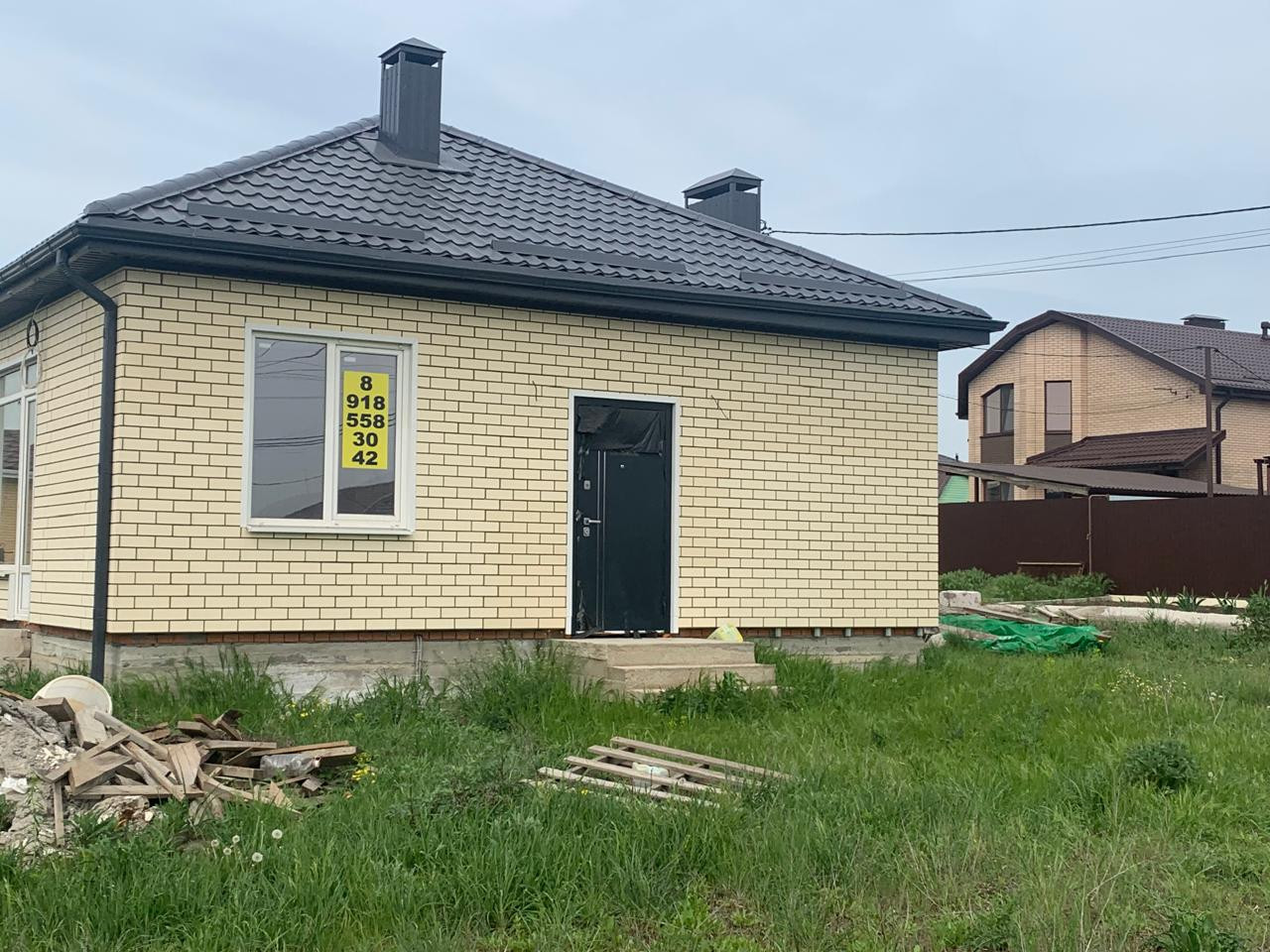Итак, продается одноэтажный кирпичный дом 2023 года постройки, общей площадью 58,5 кв.м., на участке 5 сот. Участок ровный, угловой.