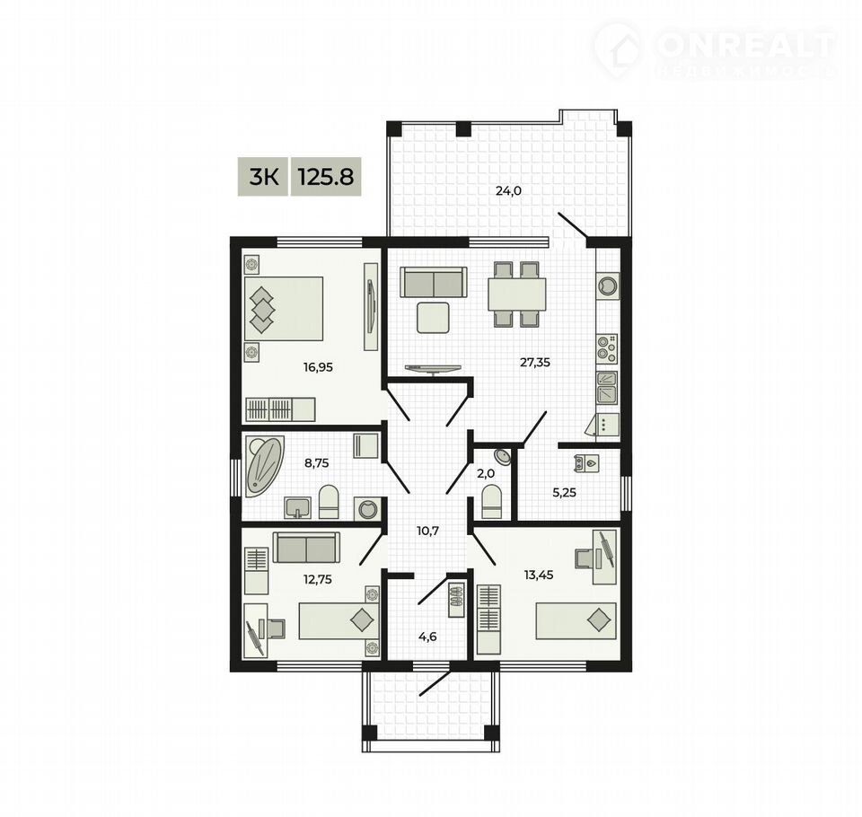 Общая площадь 125.8 м2