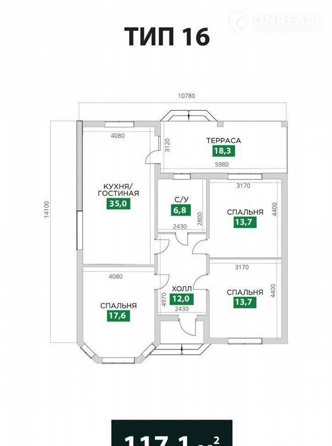 Общая площадь 117.1 м2