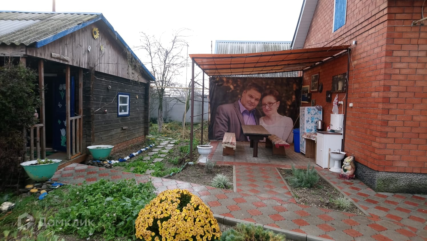 Двор - тротуарная плитка.