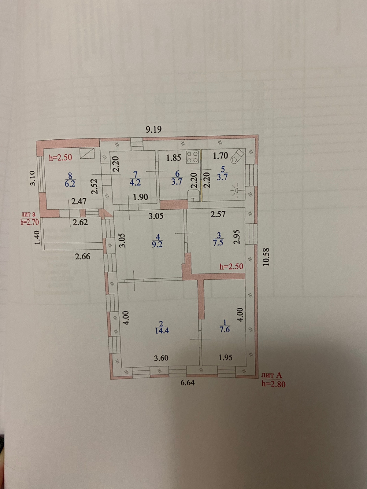 Общая площадь 61.9 м2