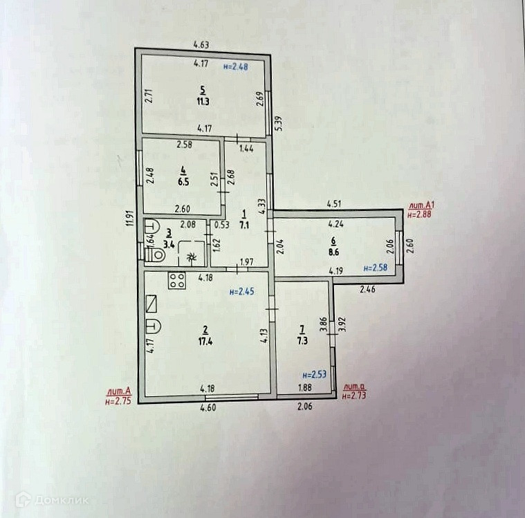 Высота потолков 2.5 м