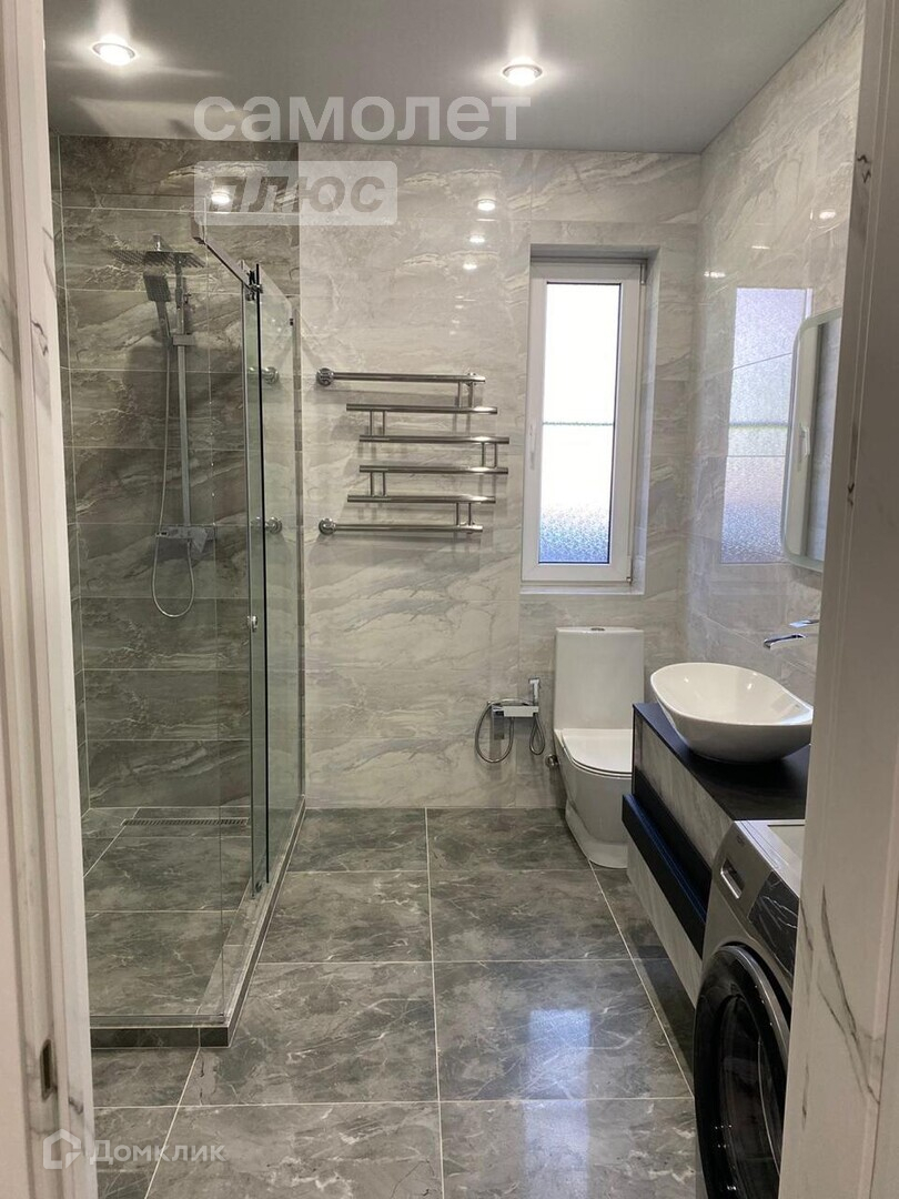Санузел совмещен. Отличный ремонт. Теплый пол. Все коммуникации. Установлена насосная станция и бак на 500 литров.