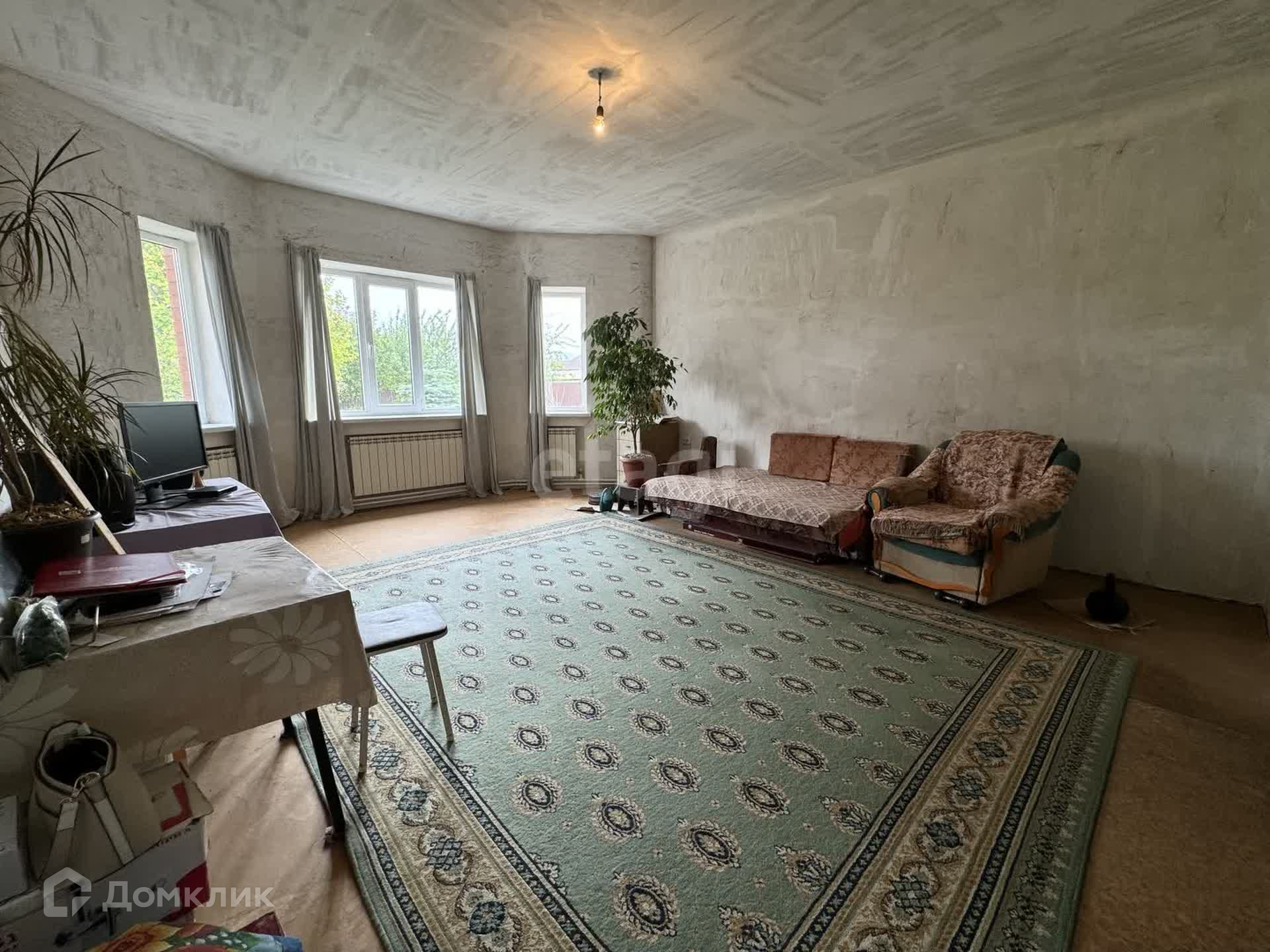 Участок 8 соток, правильной формы 20 на 40 метров. Общая площадь - 171 м2, из них жилая 77 кв.м. В доме четыре жилых комнаты: гостиная 29 кв.м., три спальни по 19,5 + 19,5 + 9,2 кв.м. Кухня 15 кв.м., раздельный санузел, котельная, и очень просторный холл! В доме выполнен частичный ремонт: стены оштукатурены глиной (это экологичный и энергоэффективный вид штукатурки) и ошпаклеваны, раздельный санузел, отделанный плиткой. Все коммуникации (газ, вода, электричество, канализация - септик) подключены и разведены. У Вас есть замечательная возможность реализовать чистовой ремонт по своему вкусу. Дом строился для себя! Дом в 1,5 кирпича + утеплитель, фундамент глубиной 1,3 м, кровля металлочерепица, частично плиты ПК.