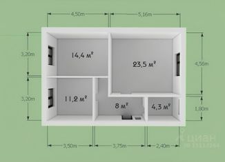 Общая площадь: 53.4 м2